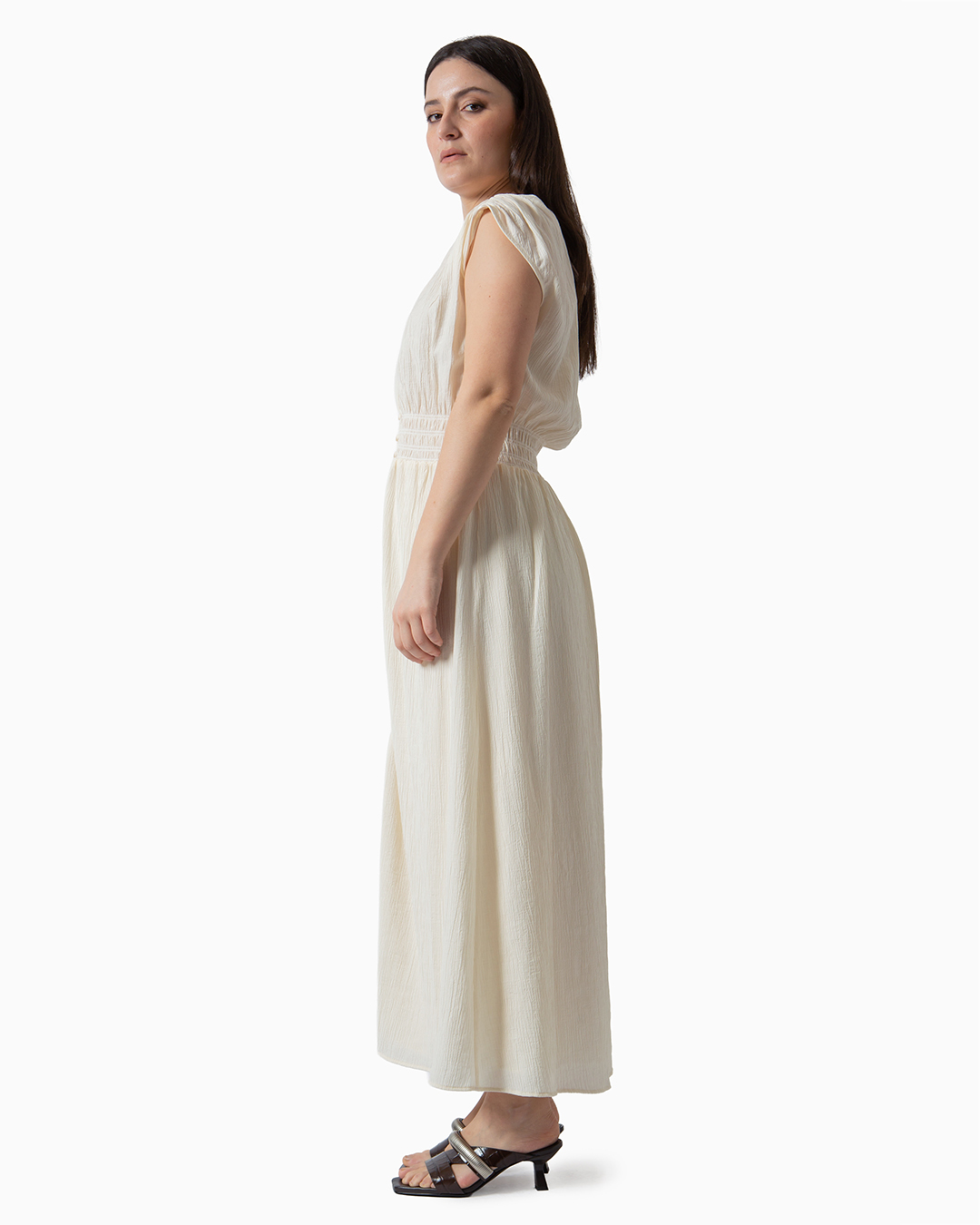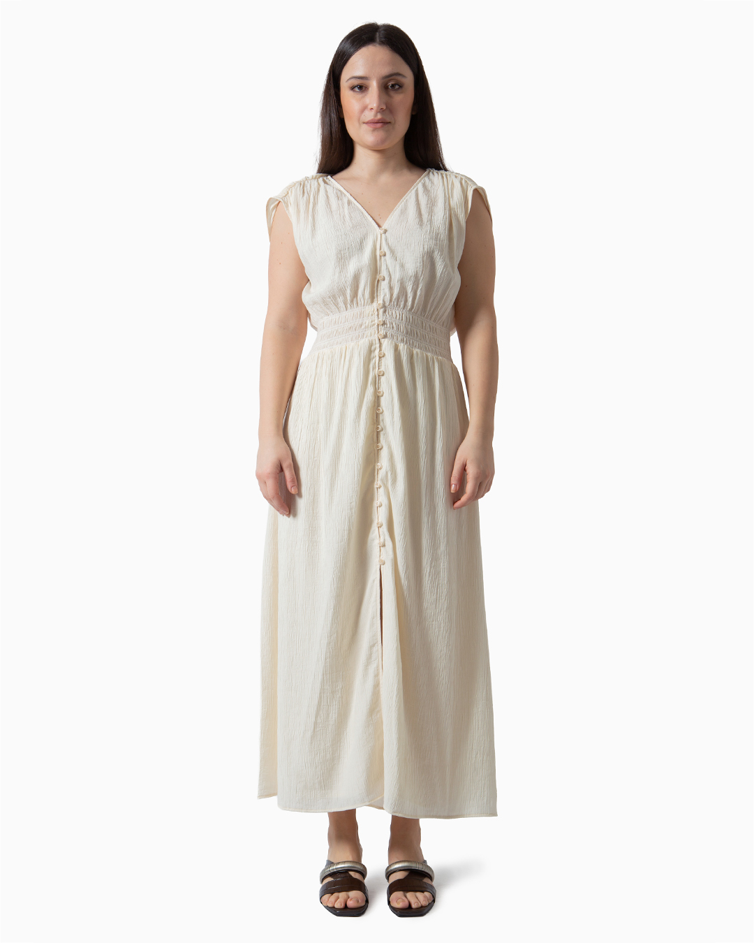 Abito lungo con bottoni a punto smock, in morbido crêpon di viscosa.