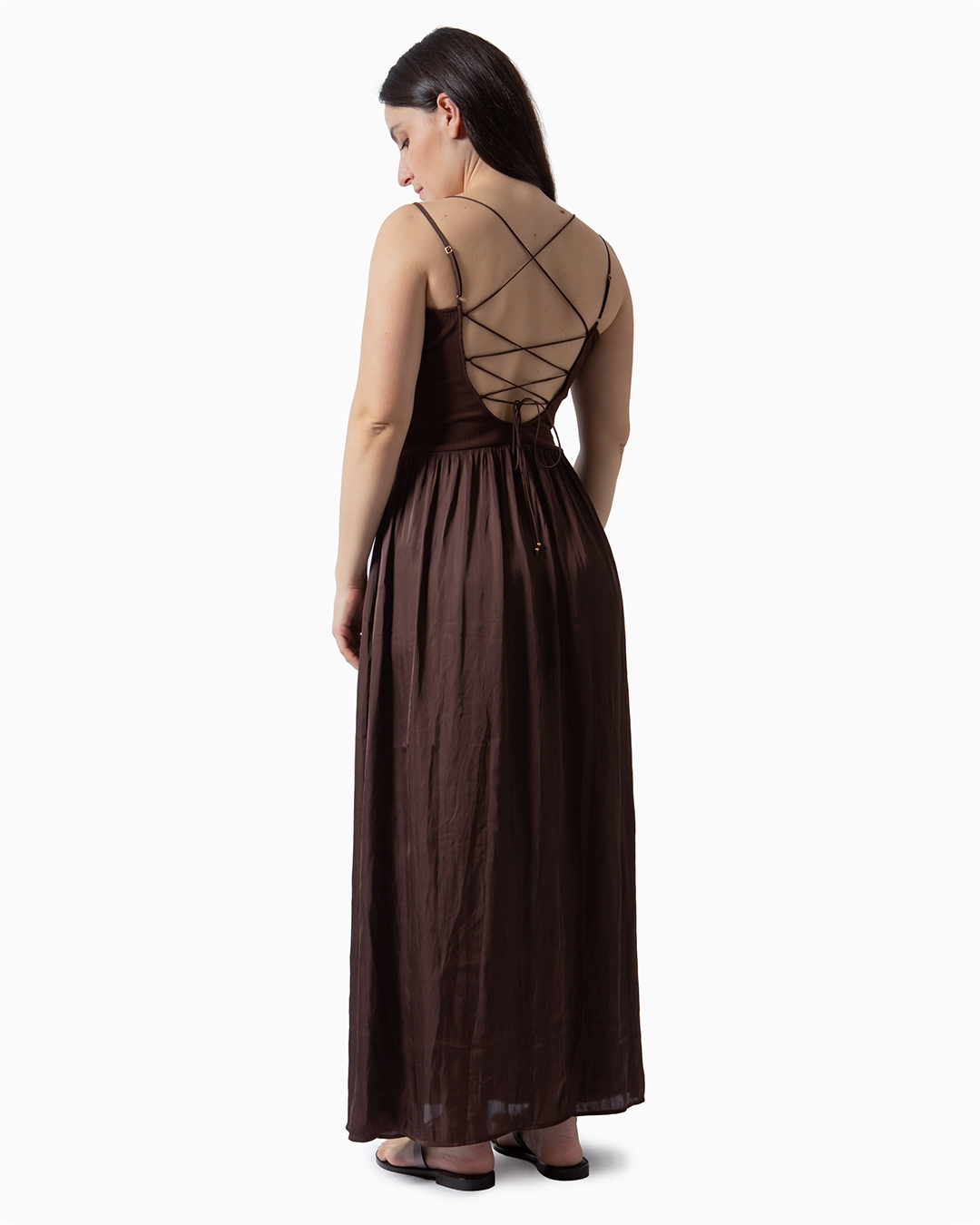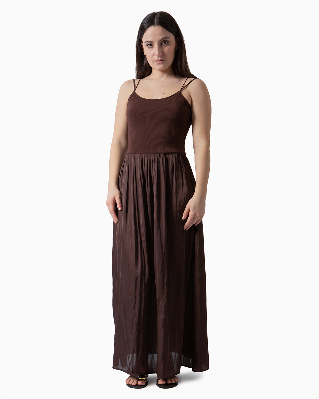 Abito lungo con bretelle sottili.
