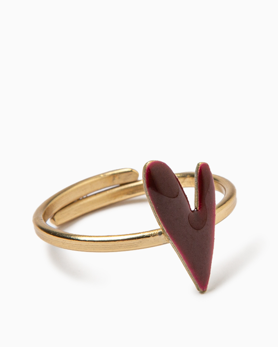 Anello in ottone con cuore di colore rosso scuro smaltato.