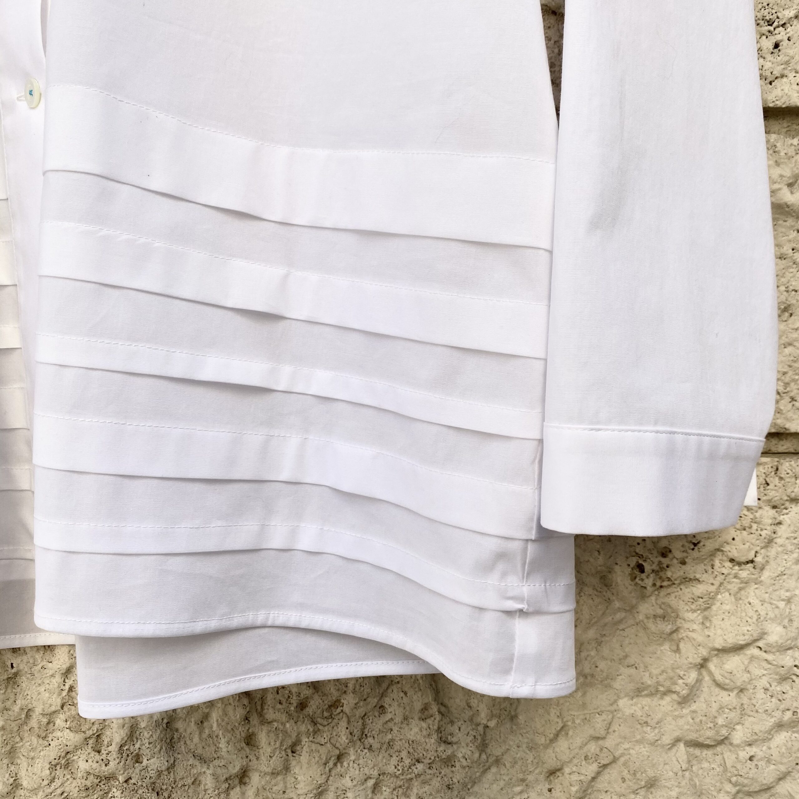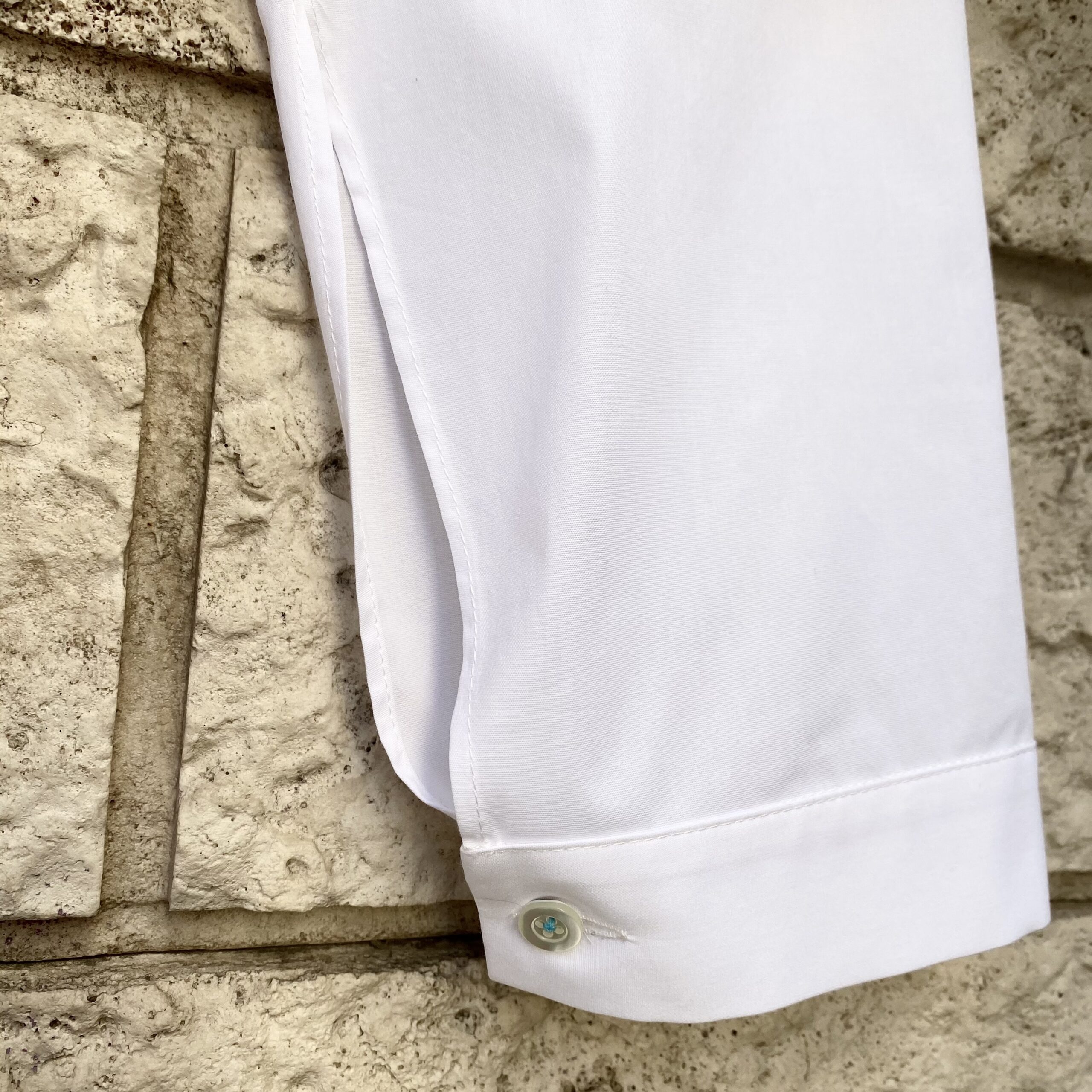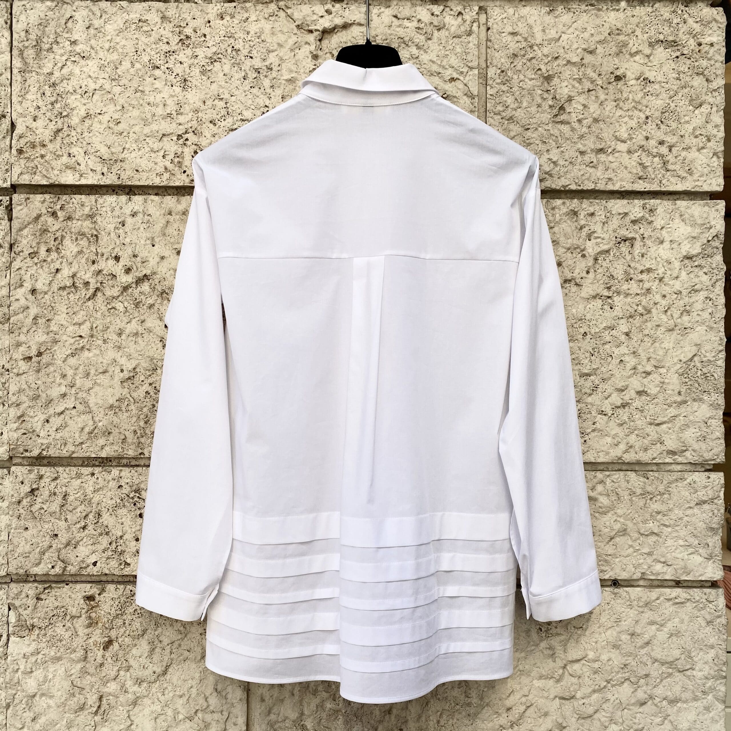 Dettagli decorativi cuciti lungo tutto il fondo della camicia.