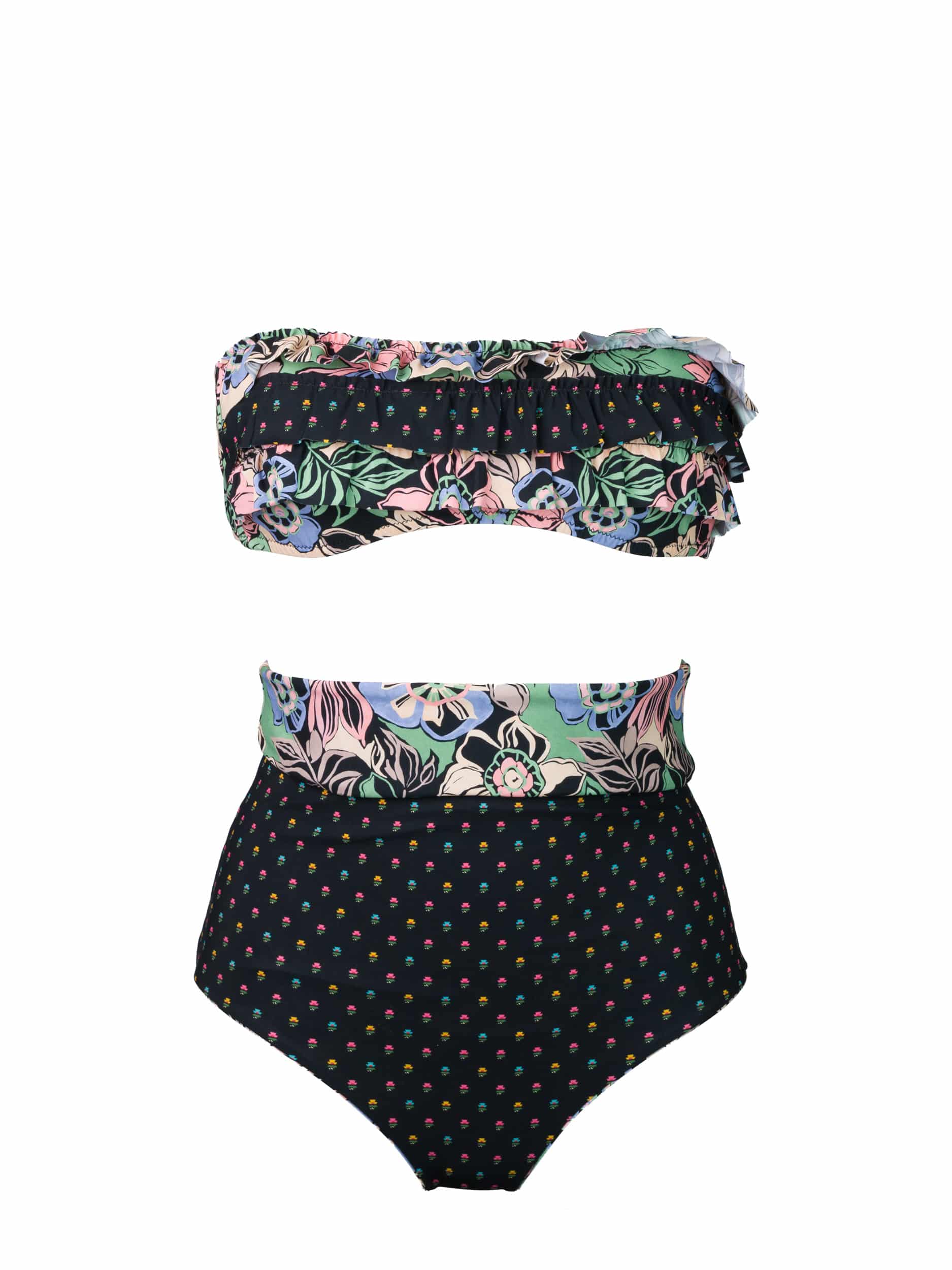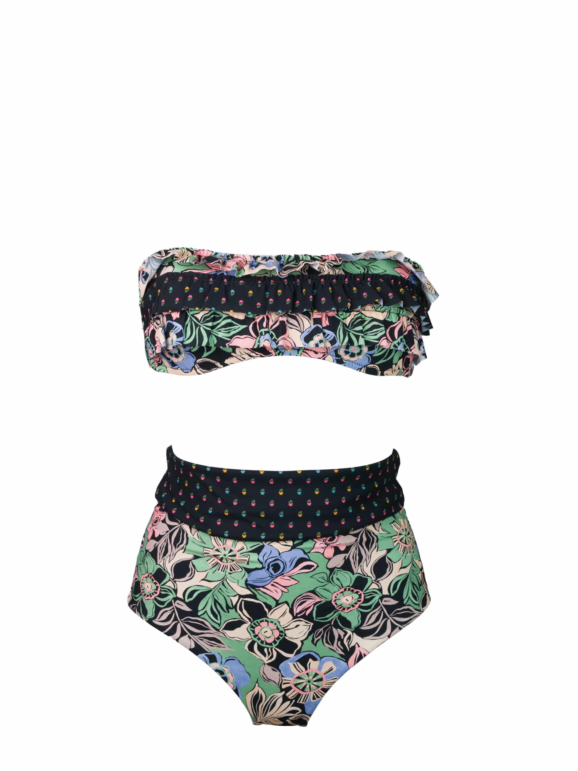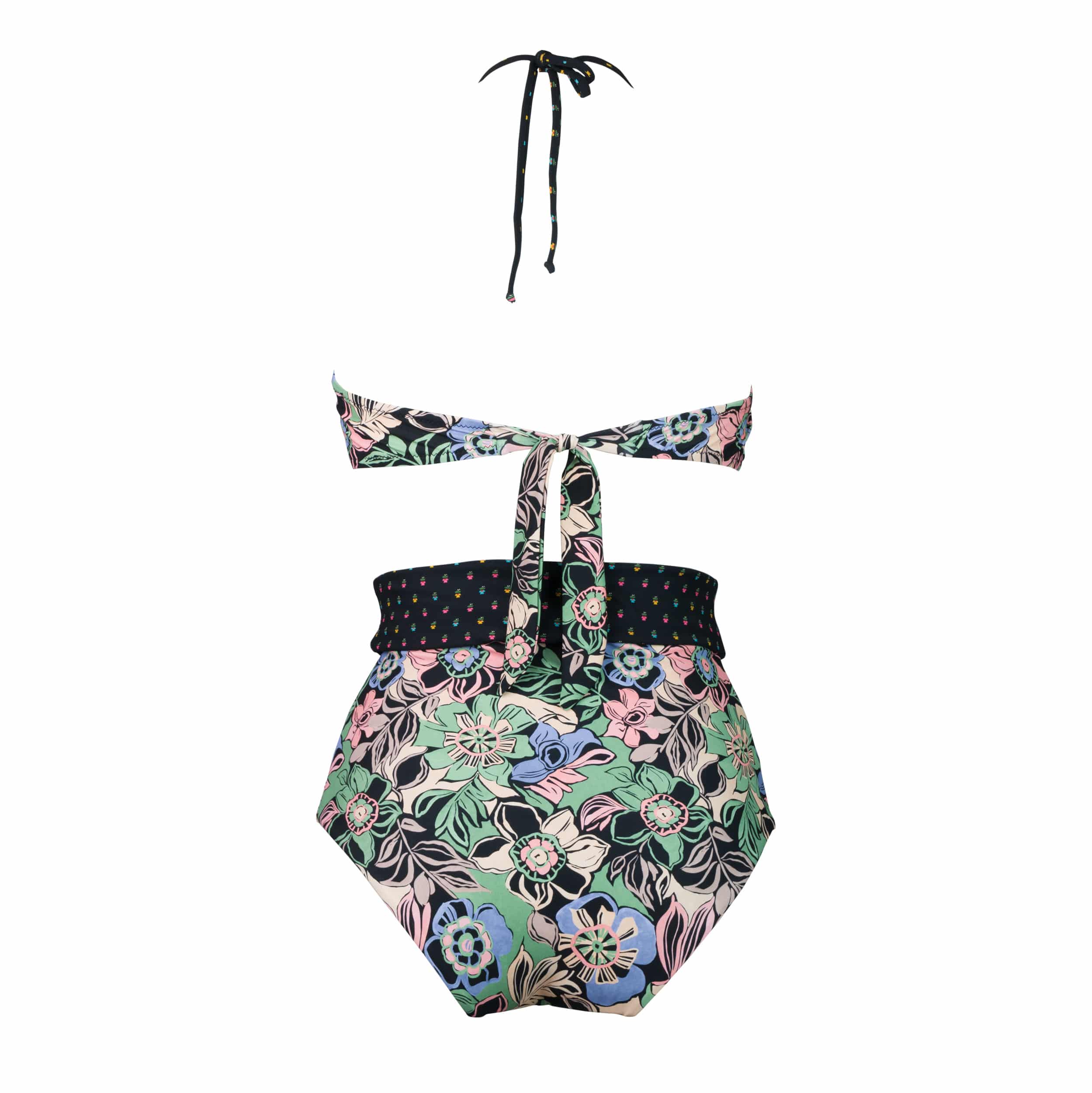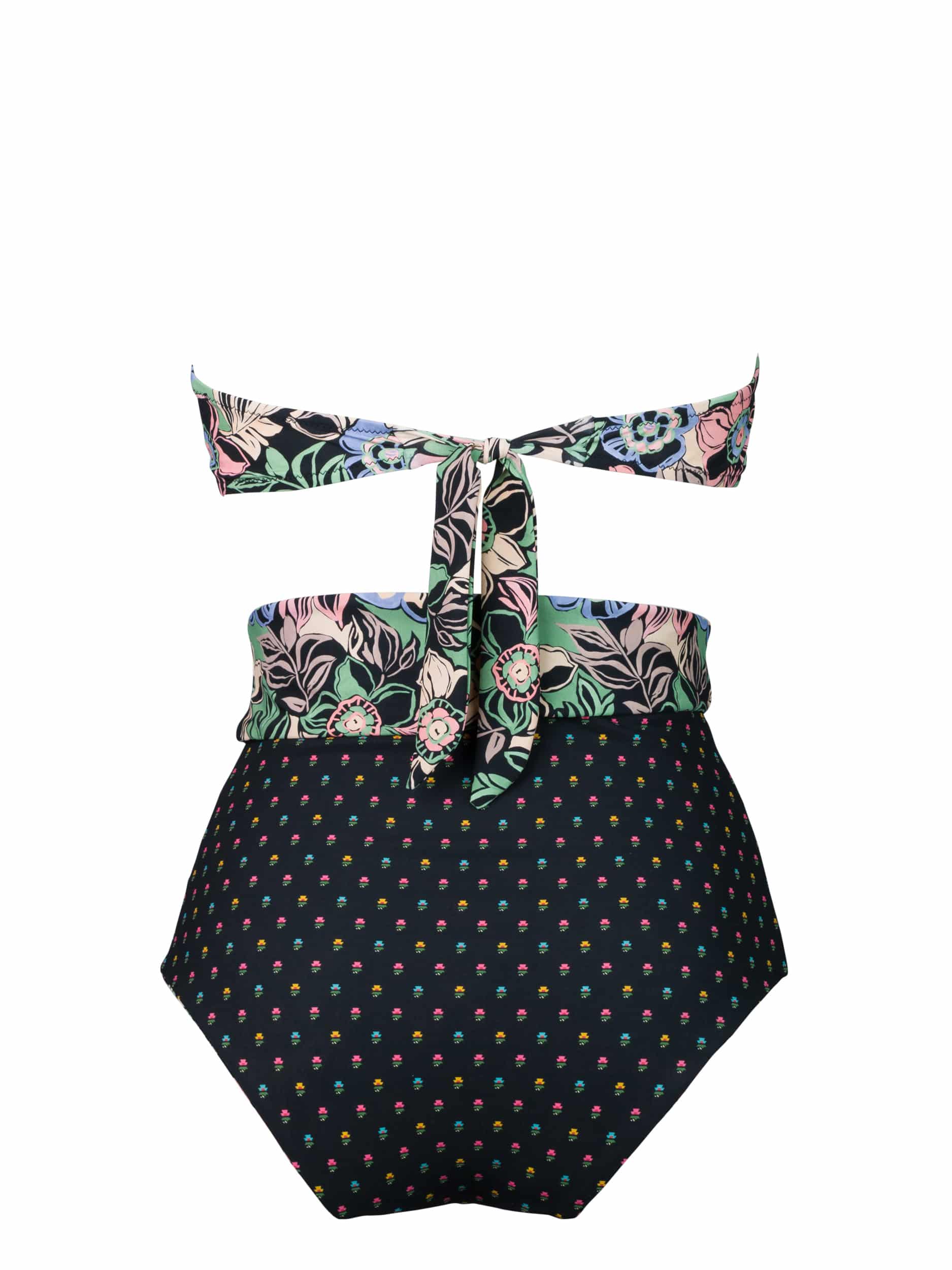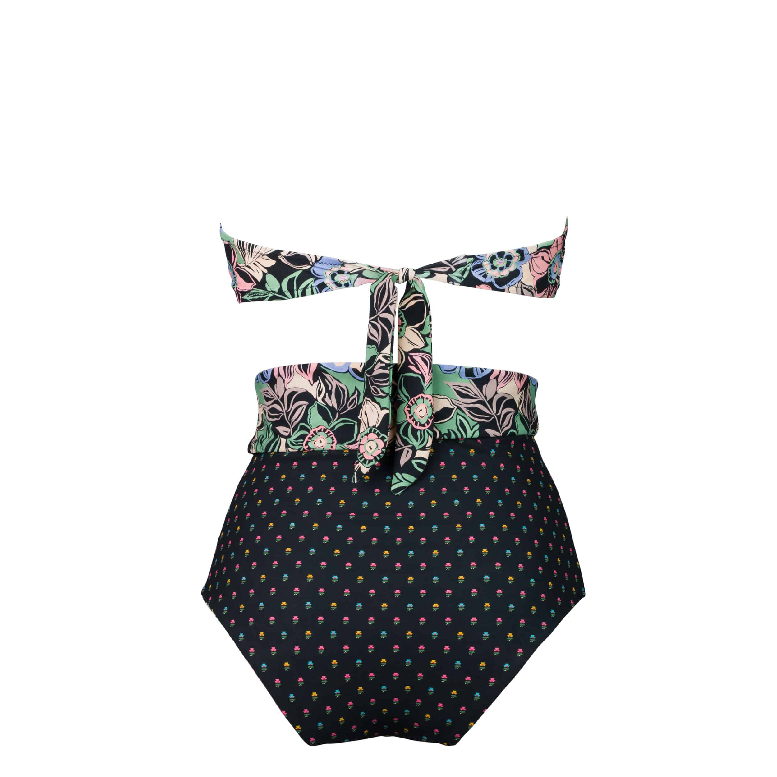 Composizione fascia: tessuto fantasia 73% poliammide, 27% elastan; fodera 88% poliammide, 12% elastan.