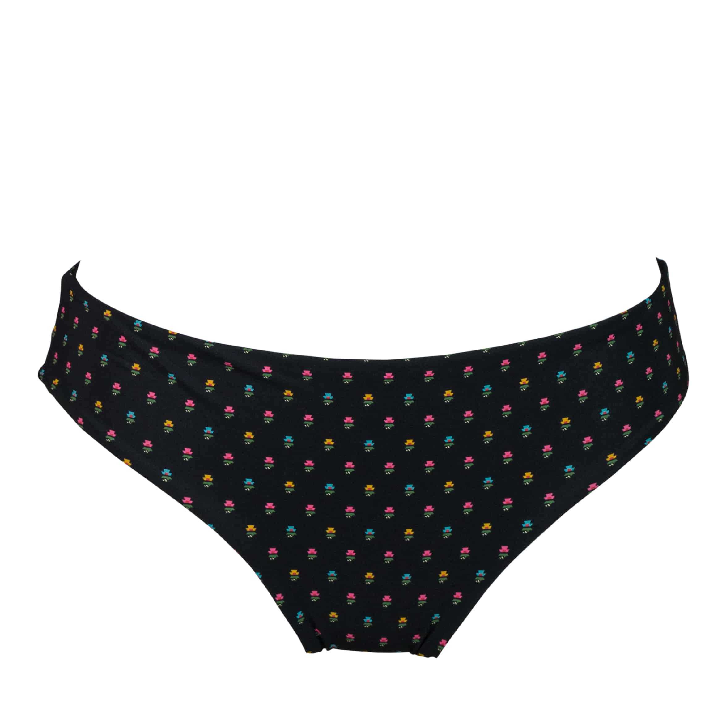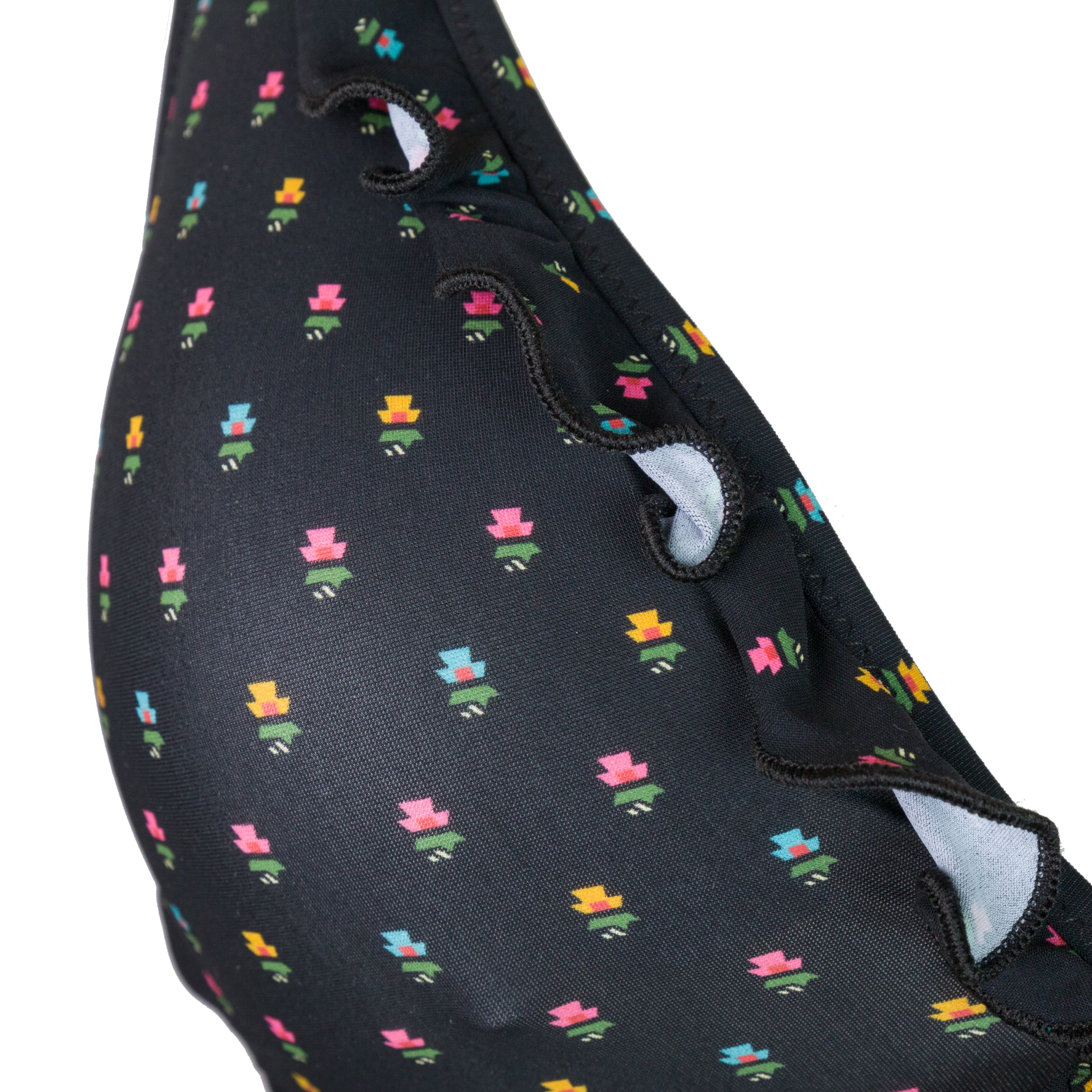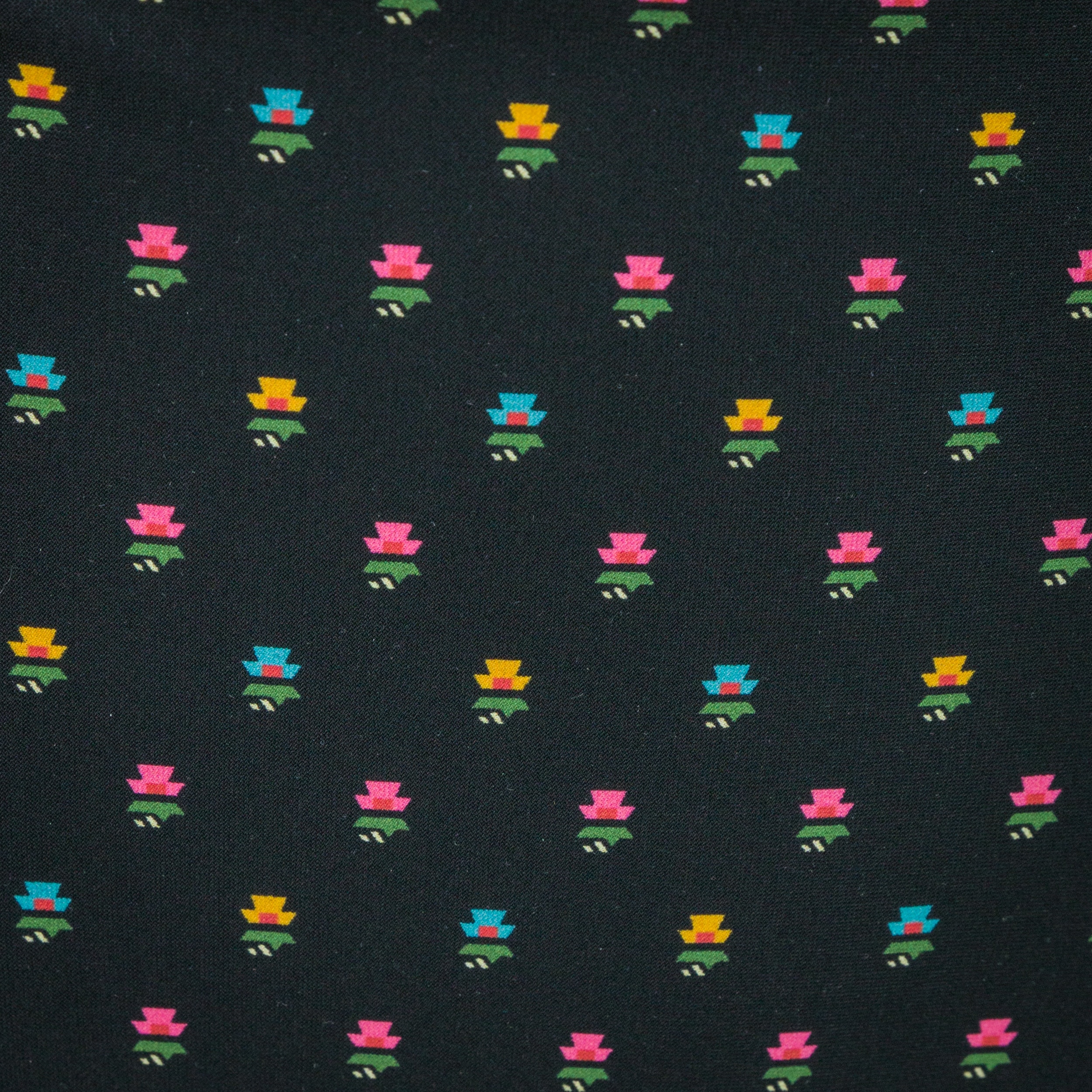Colori fantasia: base nera e piccoli fiori rosa, gialli, celesti, verdi.
