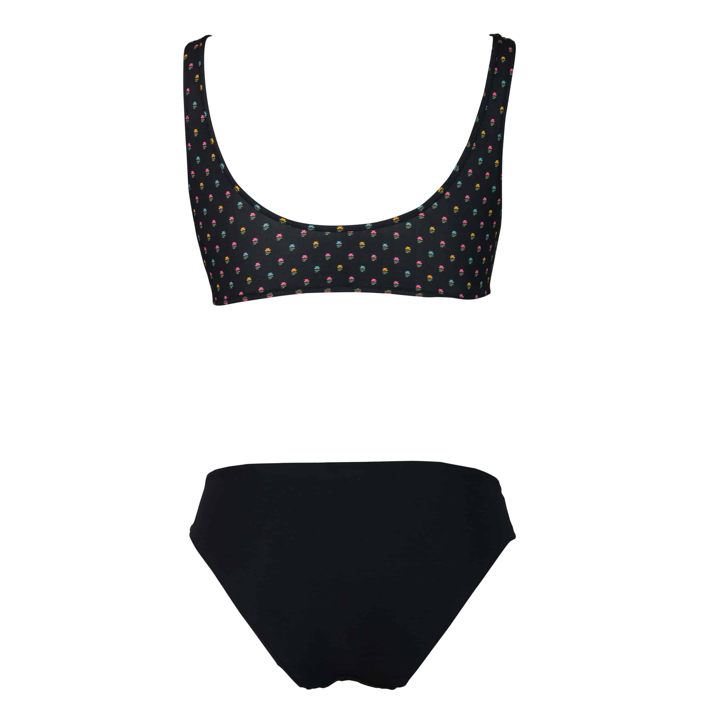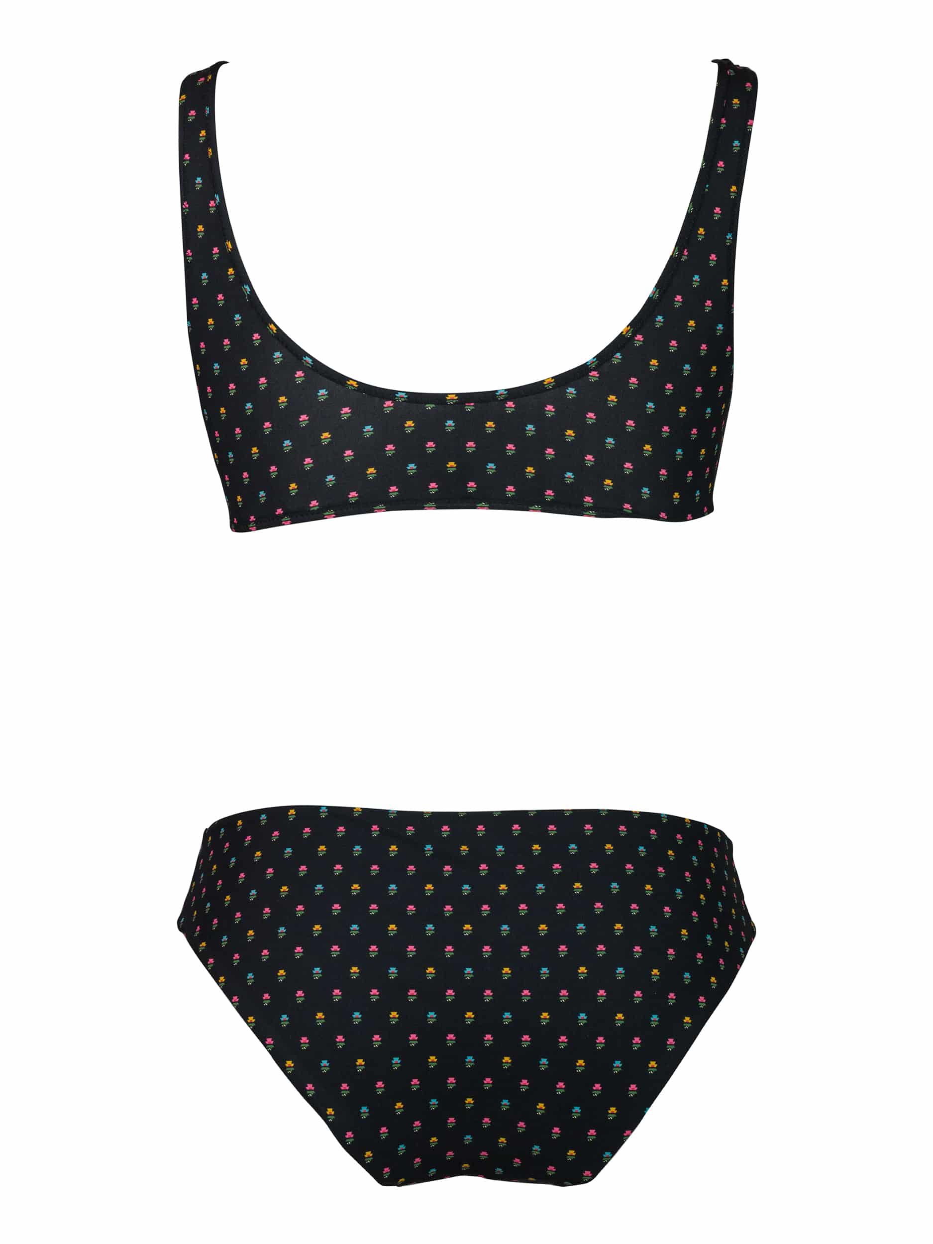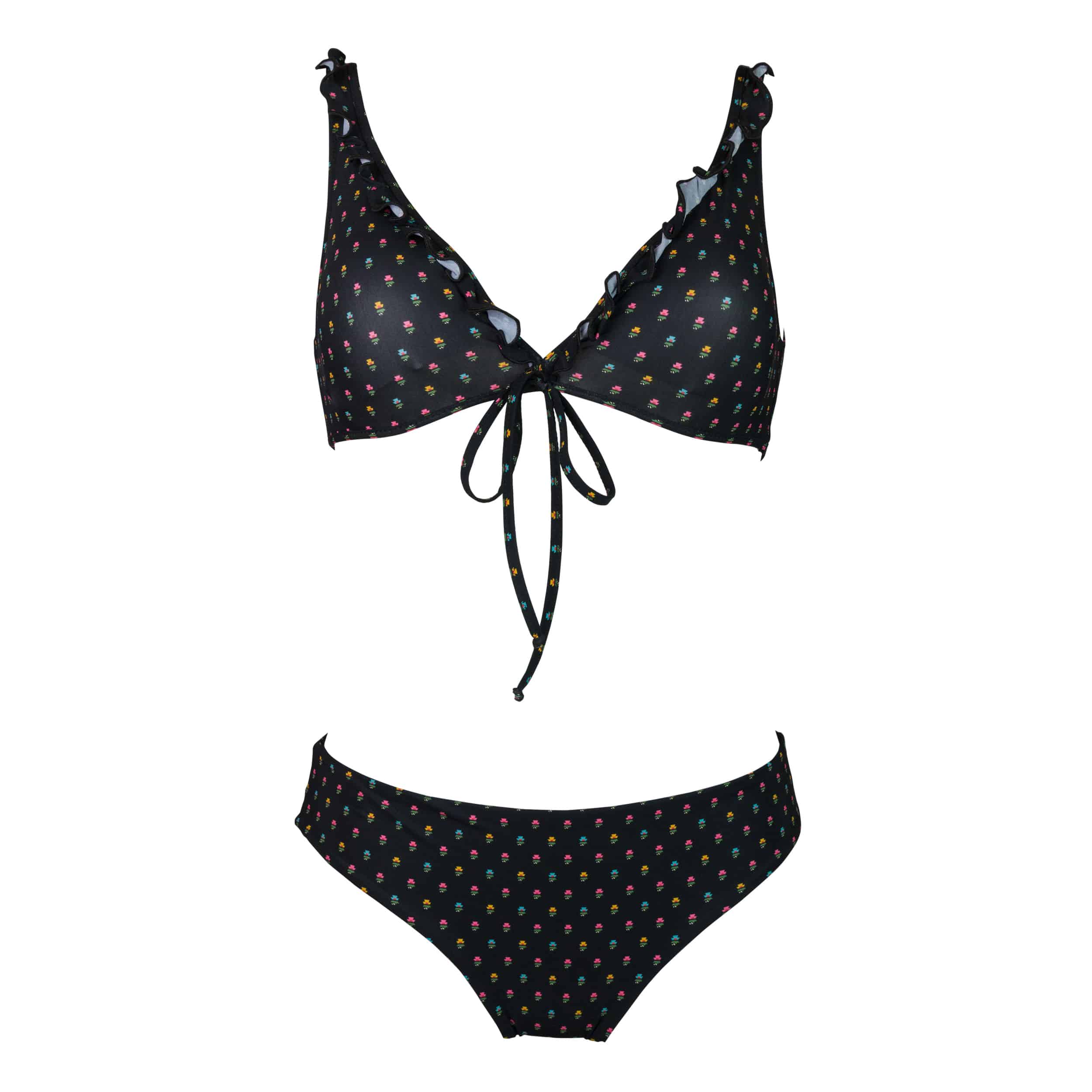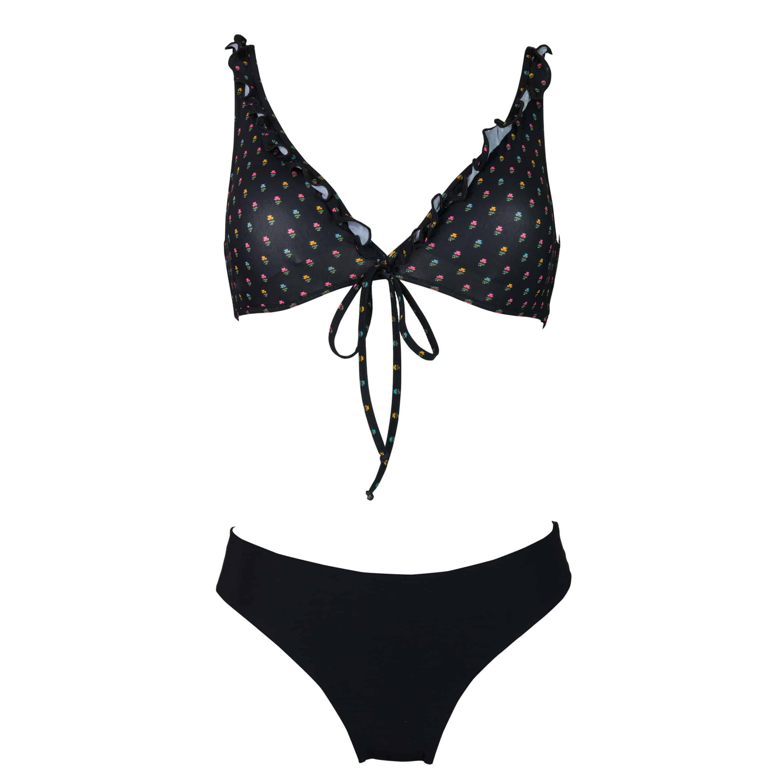 Colori fantasia: base nera e piccoli fiori rosa, gialli, celesti, verdi.