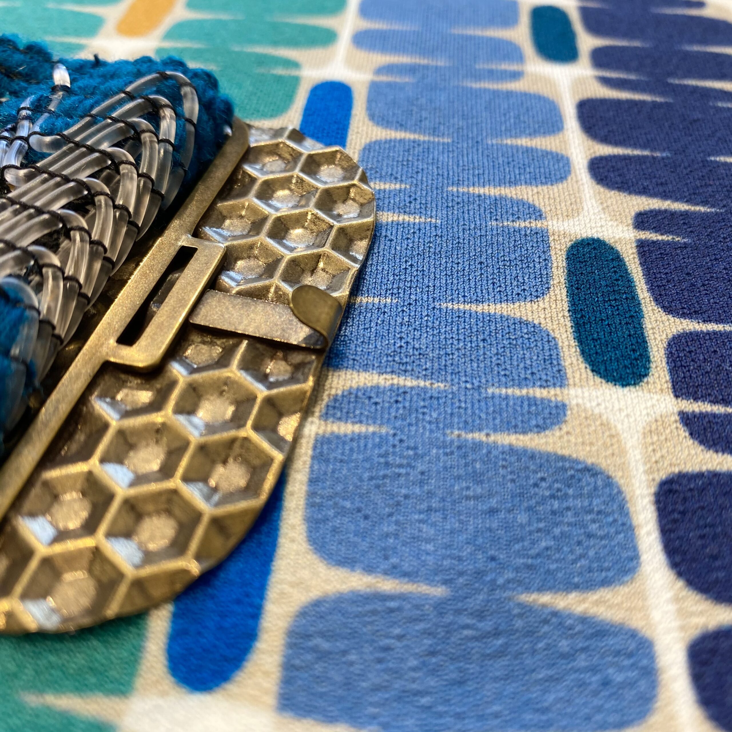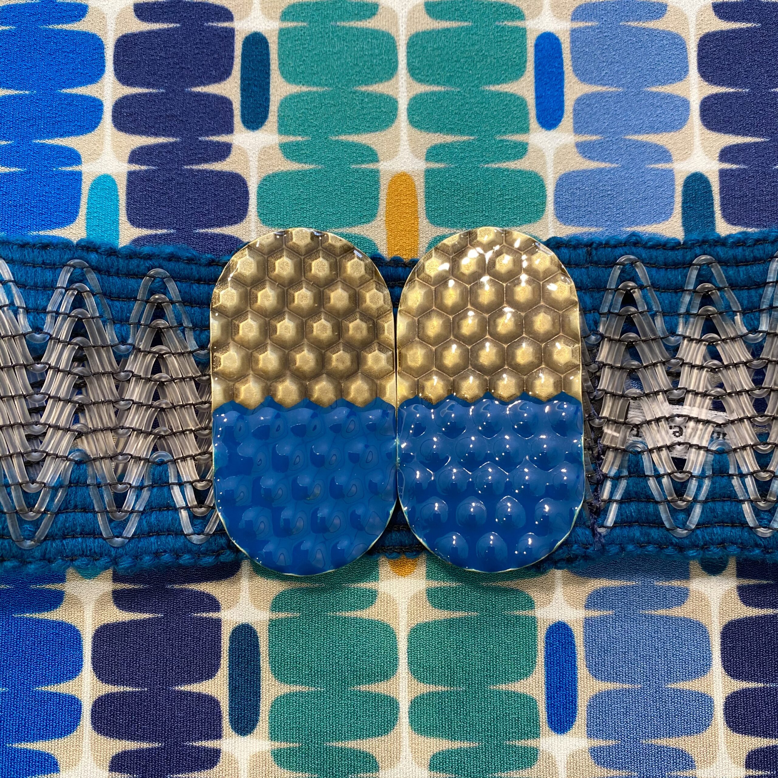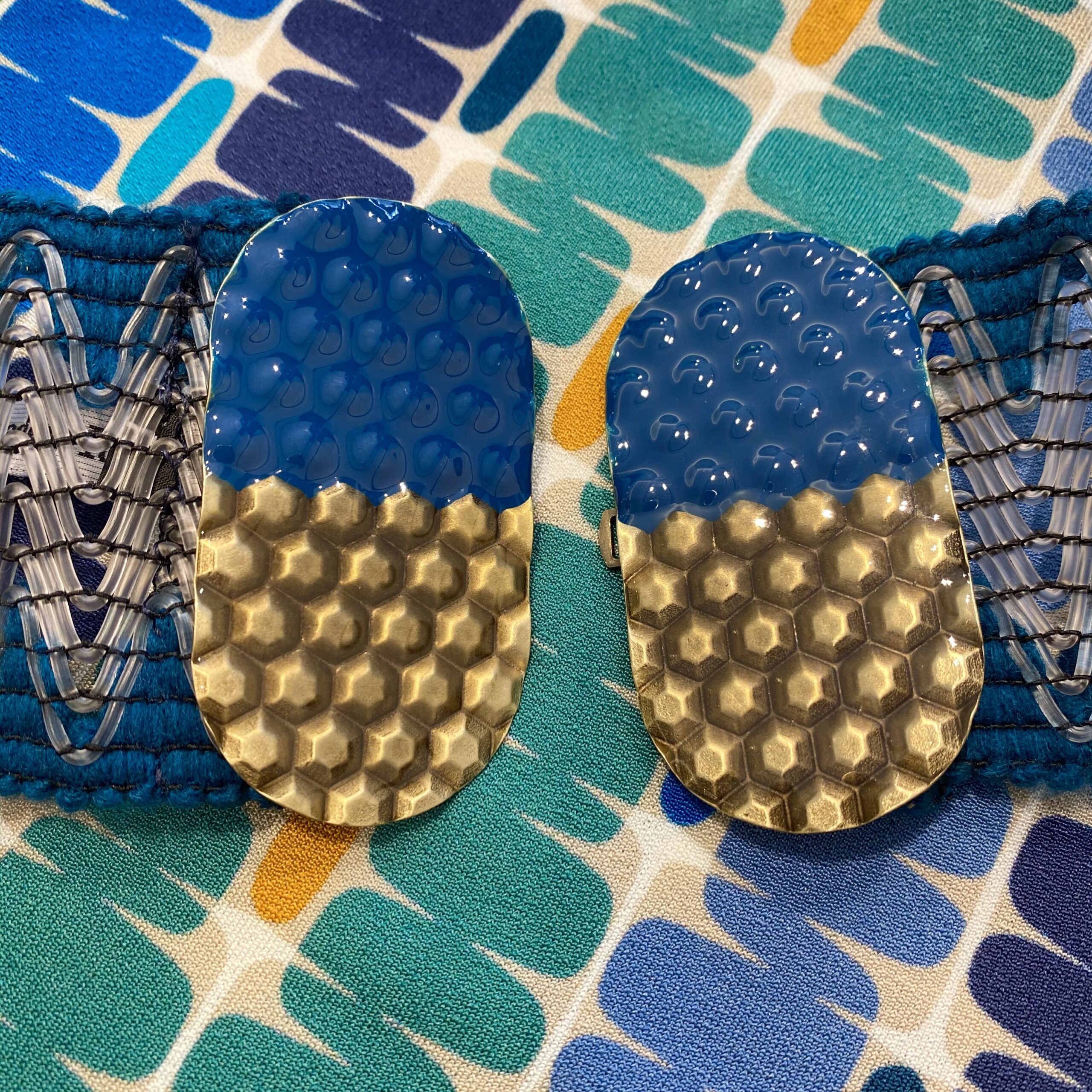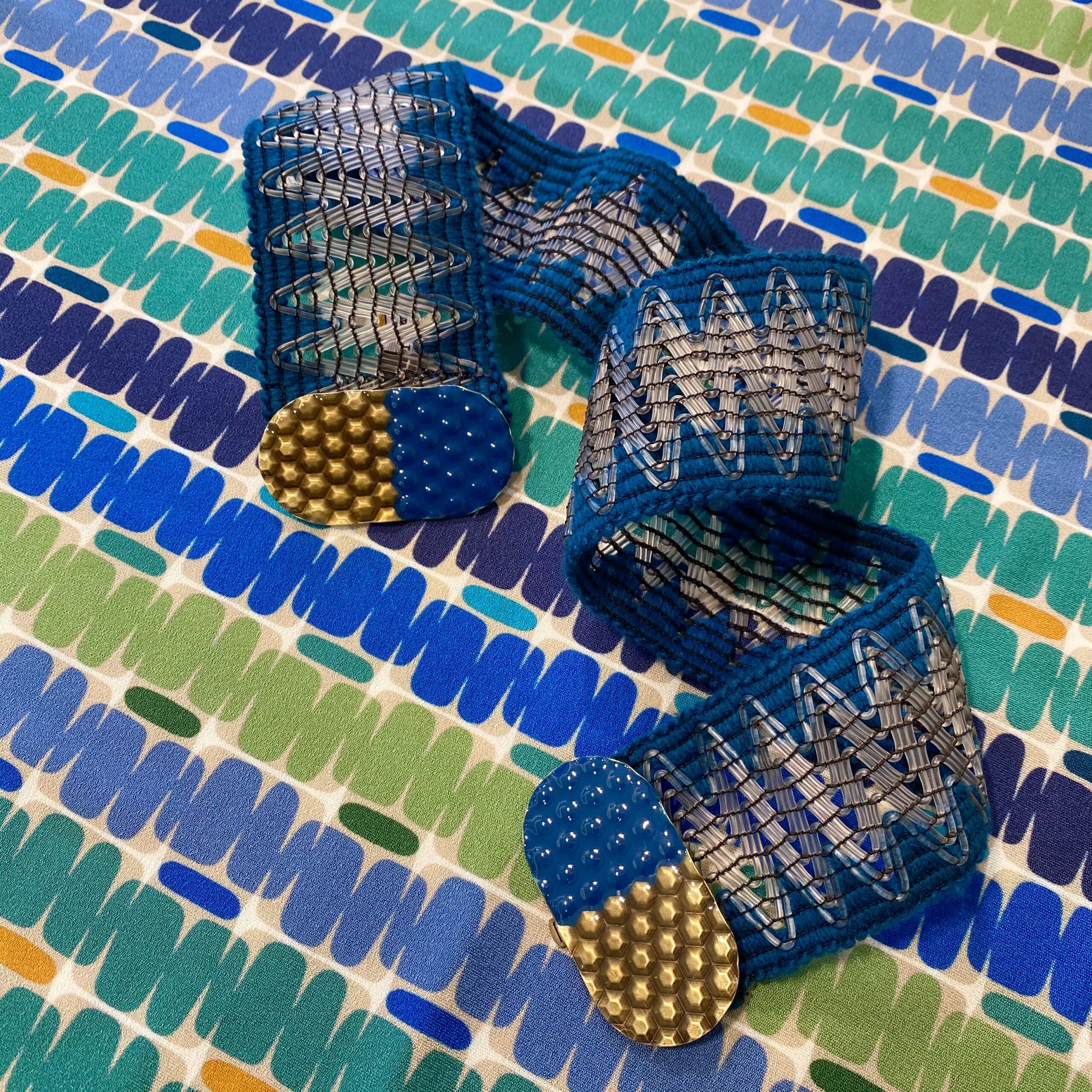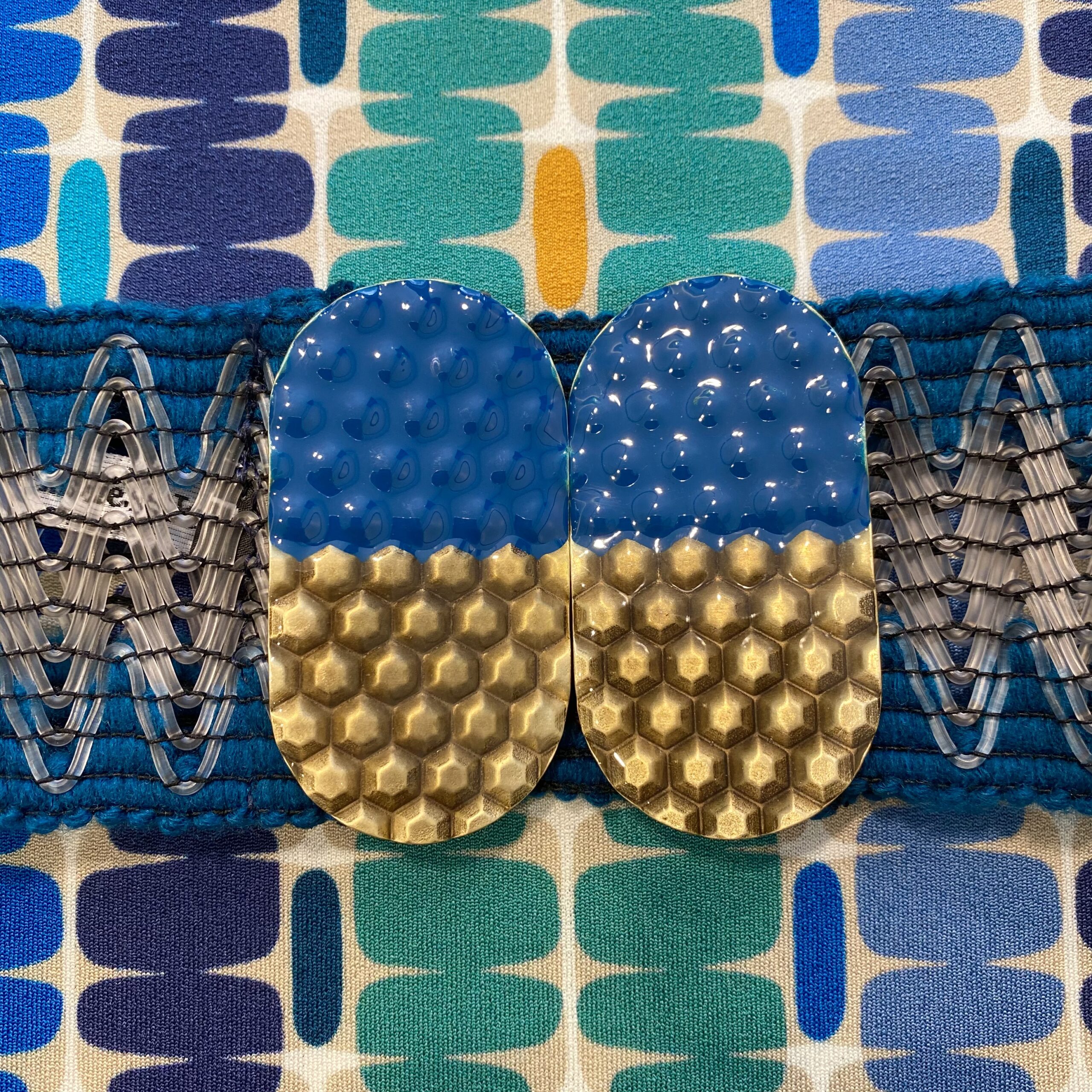 Cintura elastica spessa 6,5 cm color blu e trasparente.