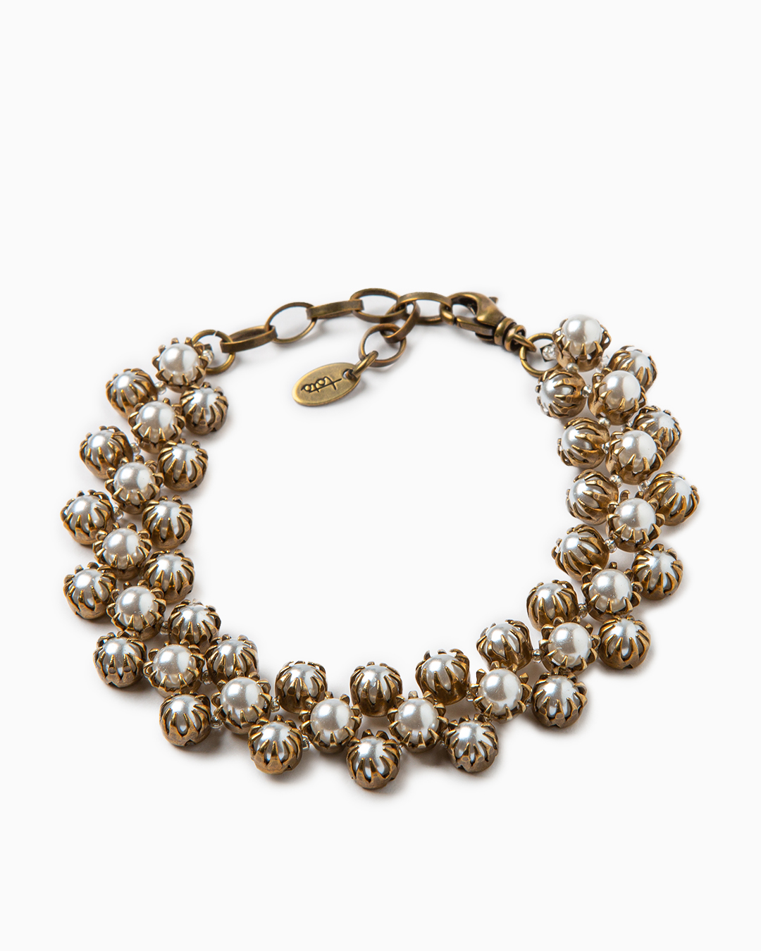 Bracciale creato secondo un’antica tecnica marinara caratterizzato da un ricamo di perle di vetro ed ematite. In ottone anallergico e nickel free con chiusura regolabile. Lunghezza bracciale 15 cm + 4 cm di allungamento.