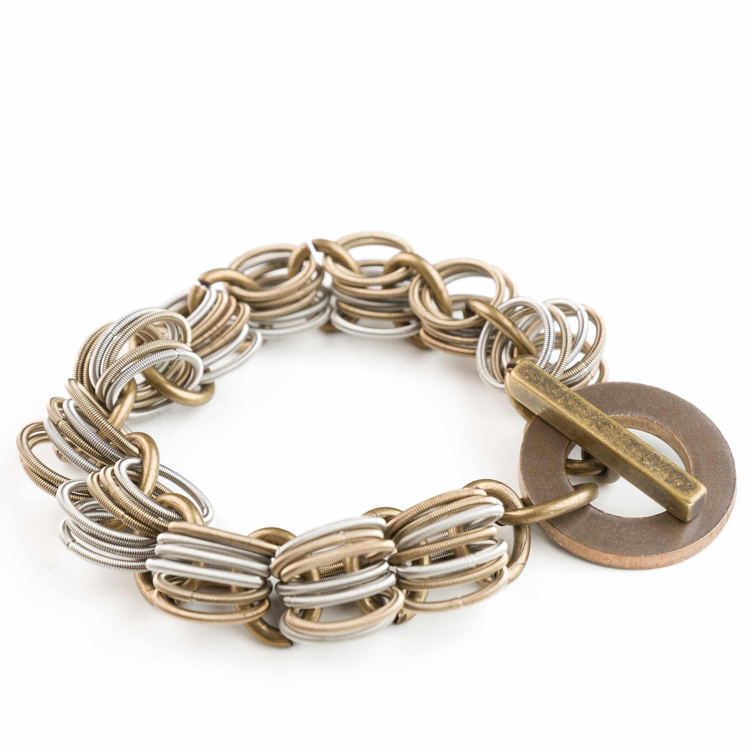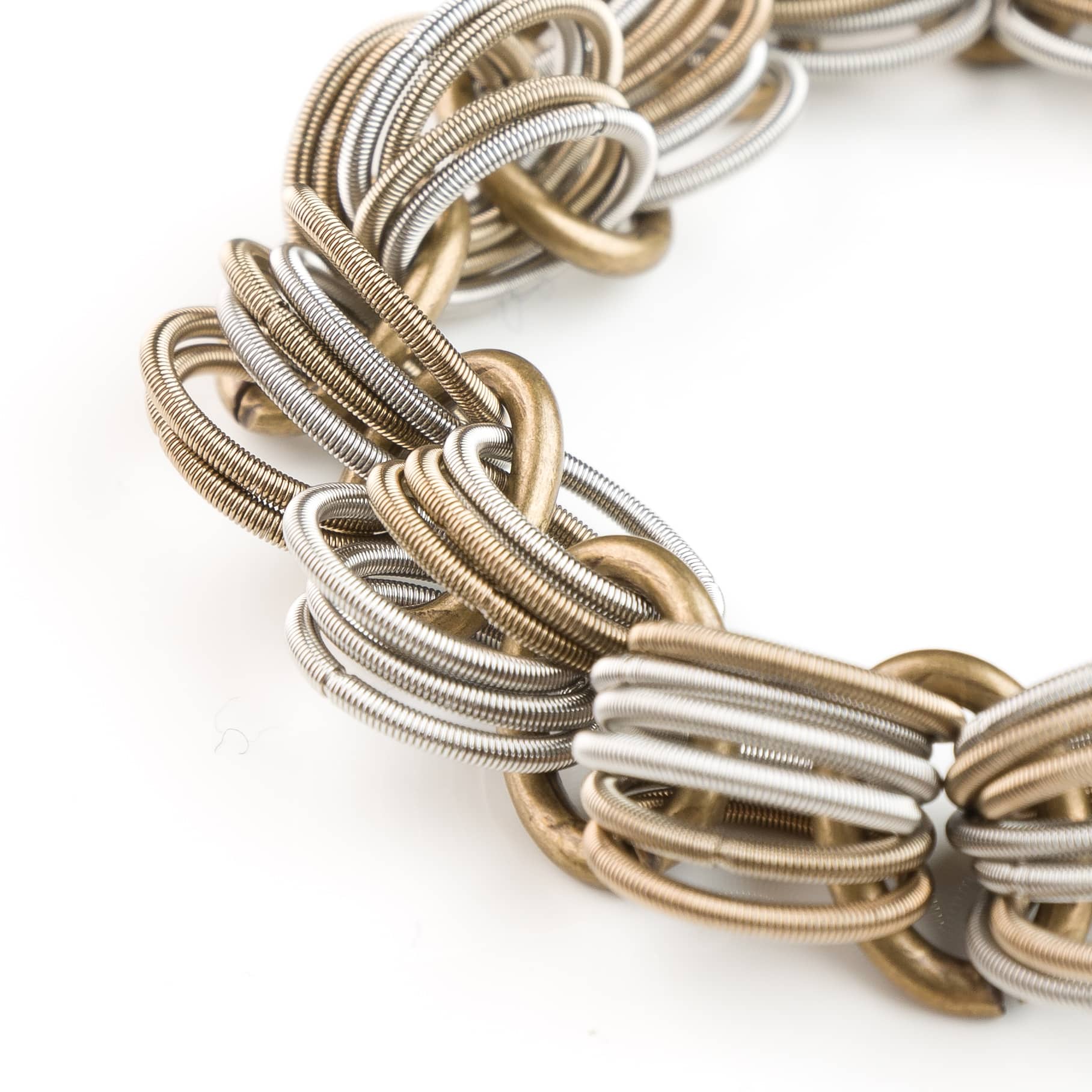 Design con intreccio di molle color argento e bronzo.