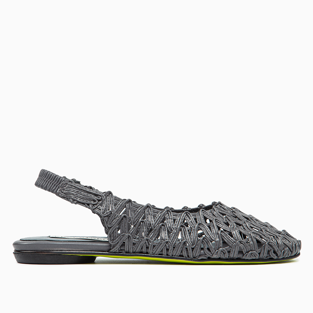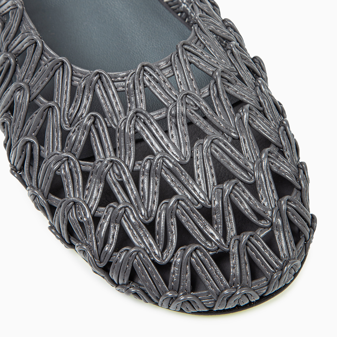 Sandalo Chanel in rete e pelle color grigio/argento.