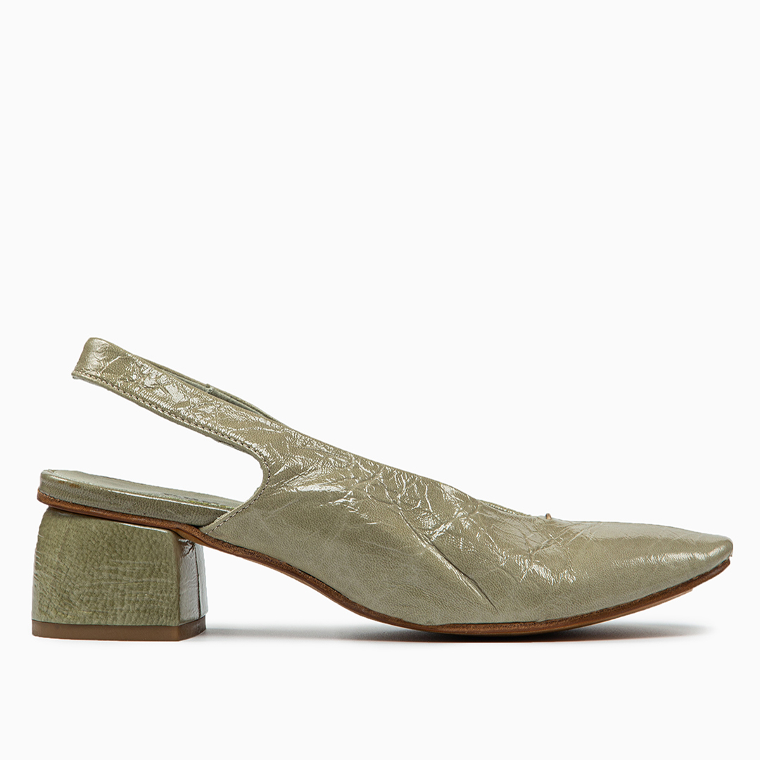 Scarpa Chanel in morbida pelle lucida color salvia.