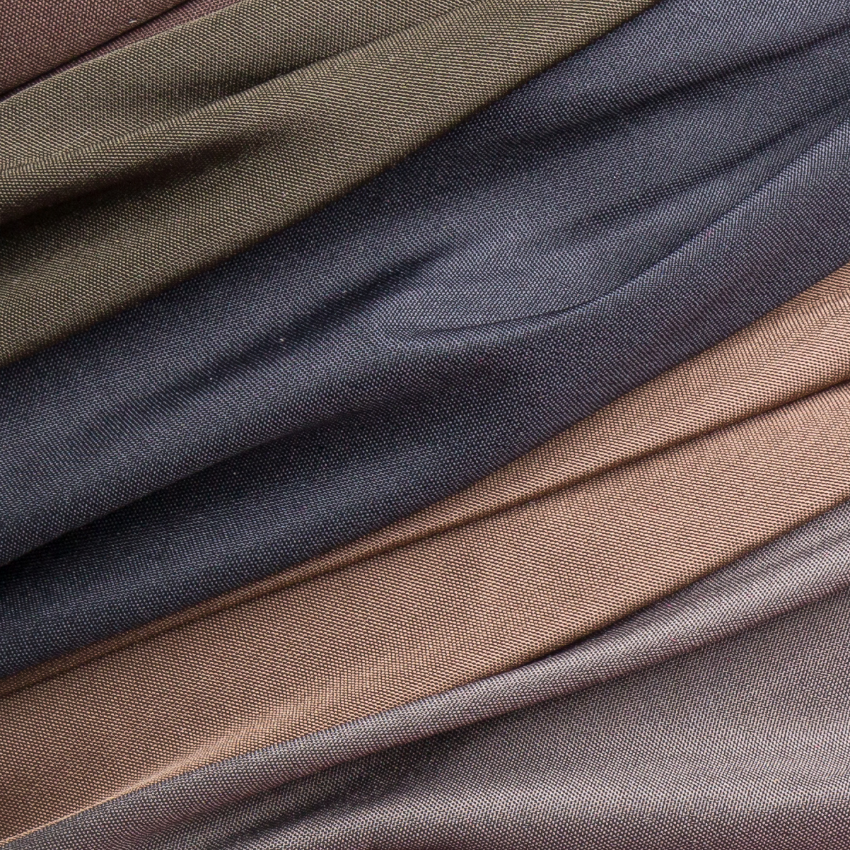 Colore ciclamino con fasce cucite color bronzo, verde, blu, tortora, sabbia del deserto.
