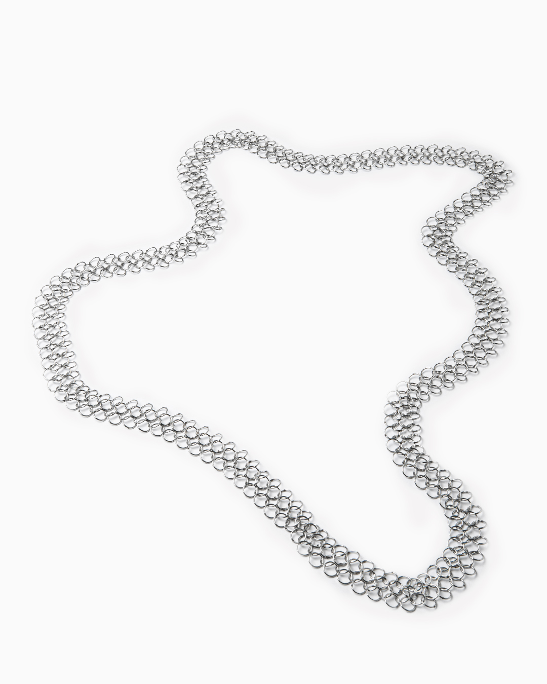 Collana realizzata in argento, in cotta di maglia metallica di grandi dimensioni.