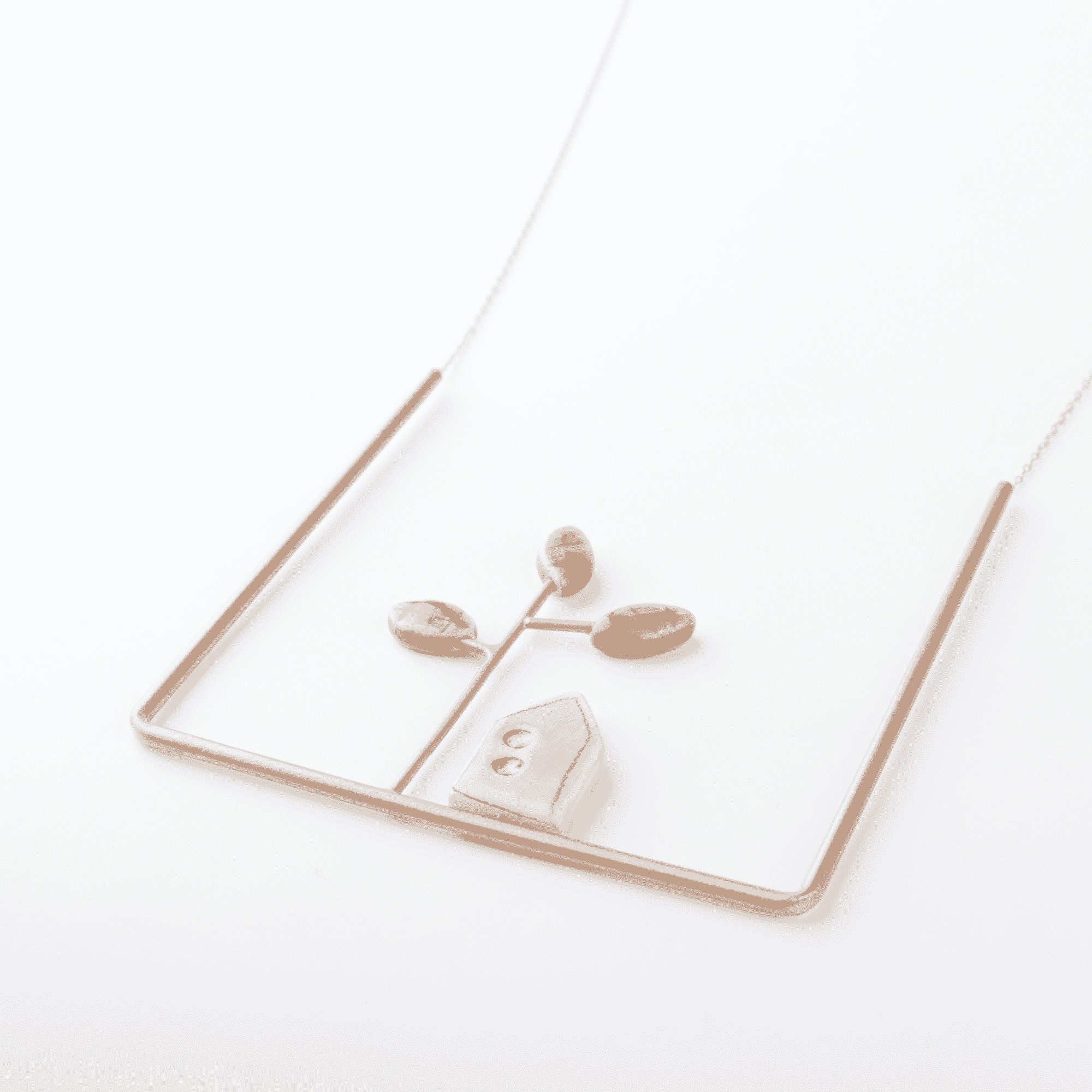 Collana in ottone galvanizzato in ottone con inserti in argilla dipinta a mano.