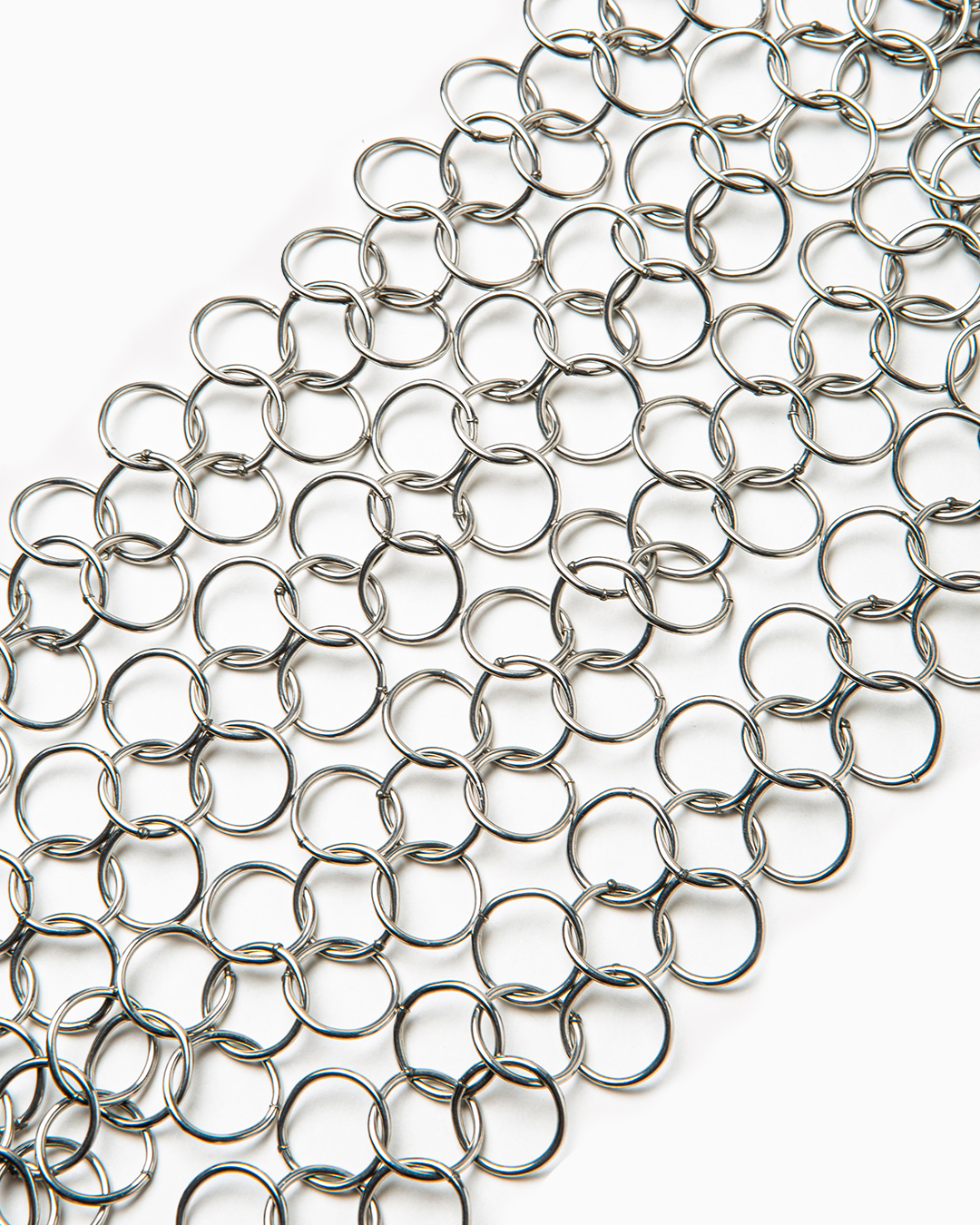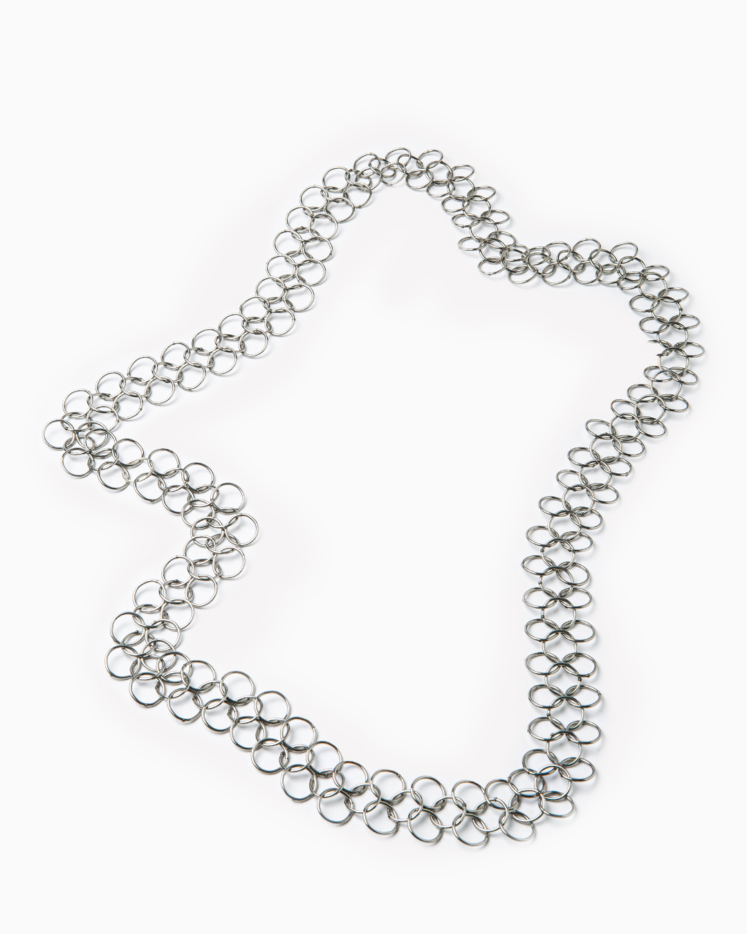Collana realizzata in argento, in cotta di maglia metallica di medie dimensioni. Materiale: acciaio inossidabile lucidato. Dimensioni: 92 x 2,4 cm. Made in France.