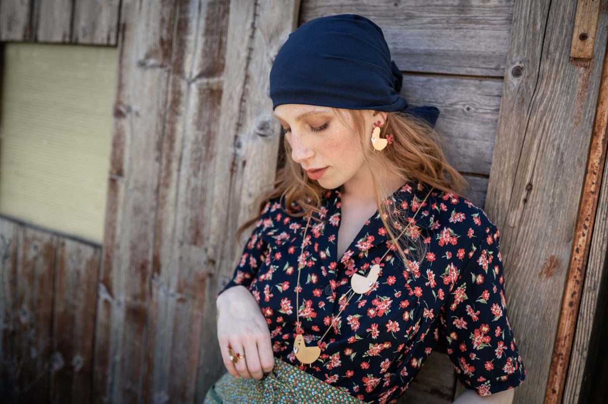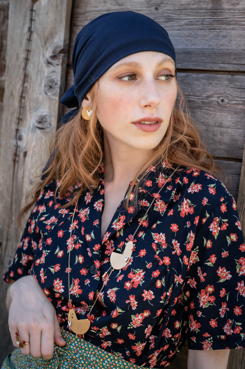 La collana GALLINE FELICI LONG è in ottone con trattamento galvanico, cataforesi e smalto, la catena ha trattamento galvanico anallergico.