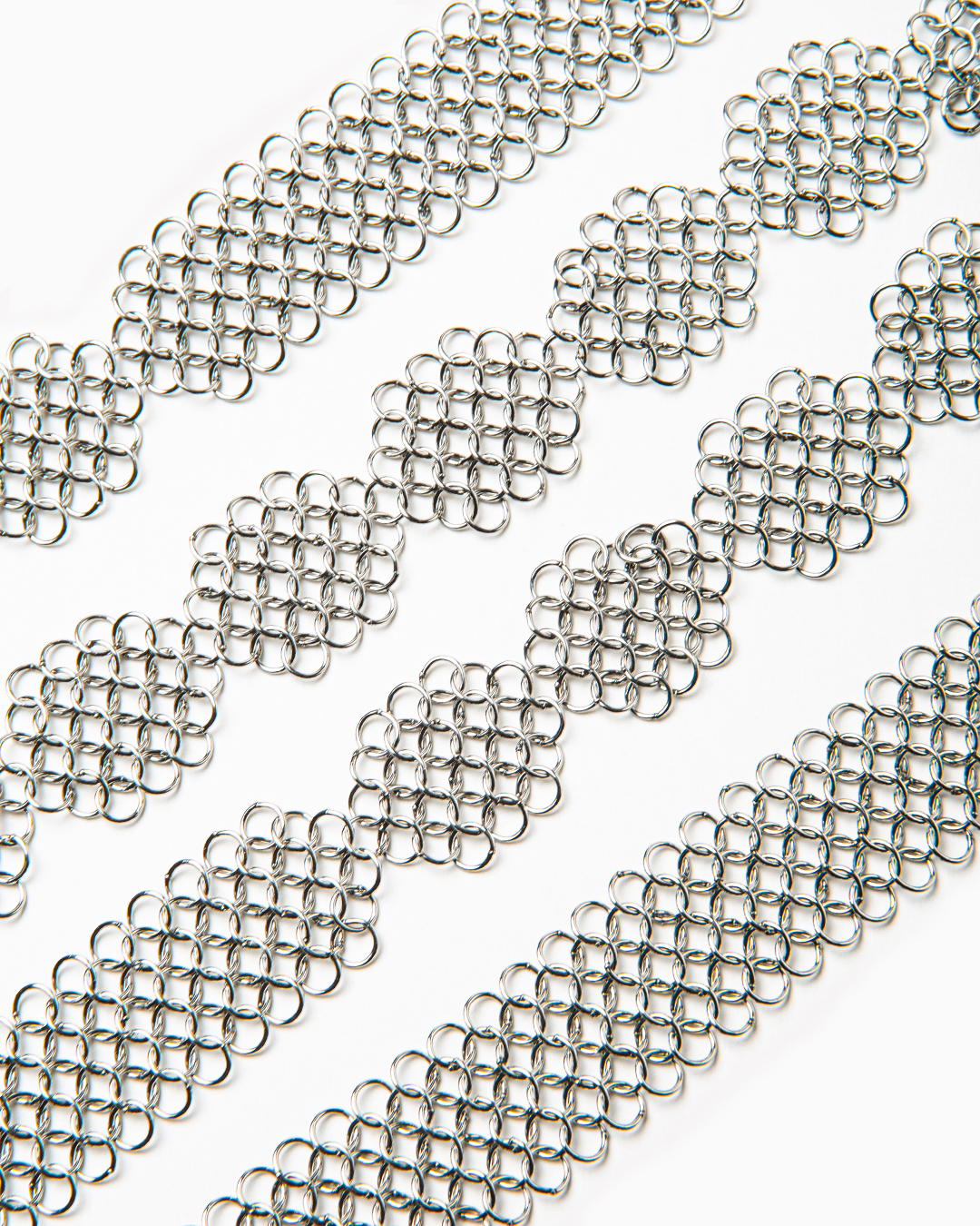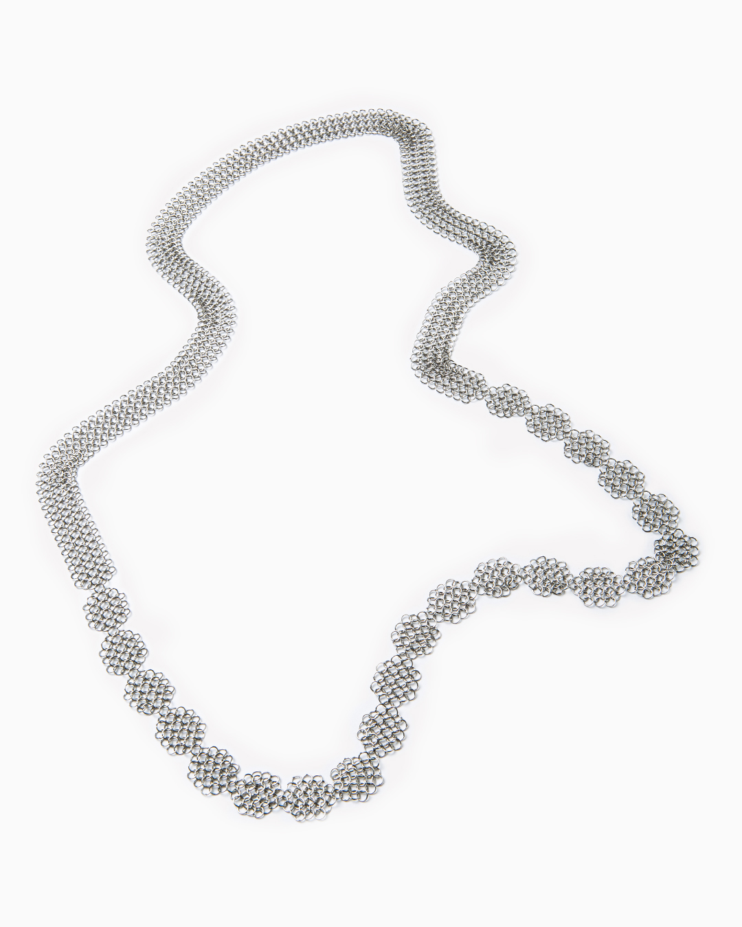 La collana si ispira a un motivo geometrico che ricorda un fiore.