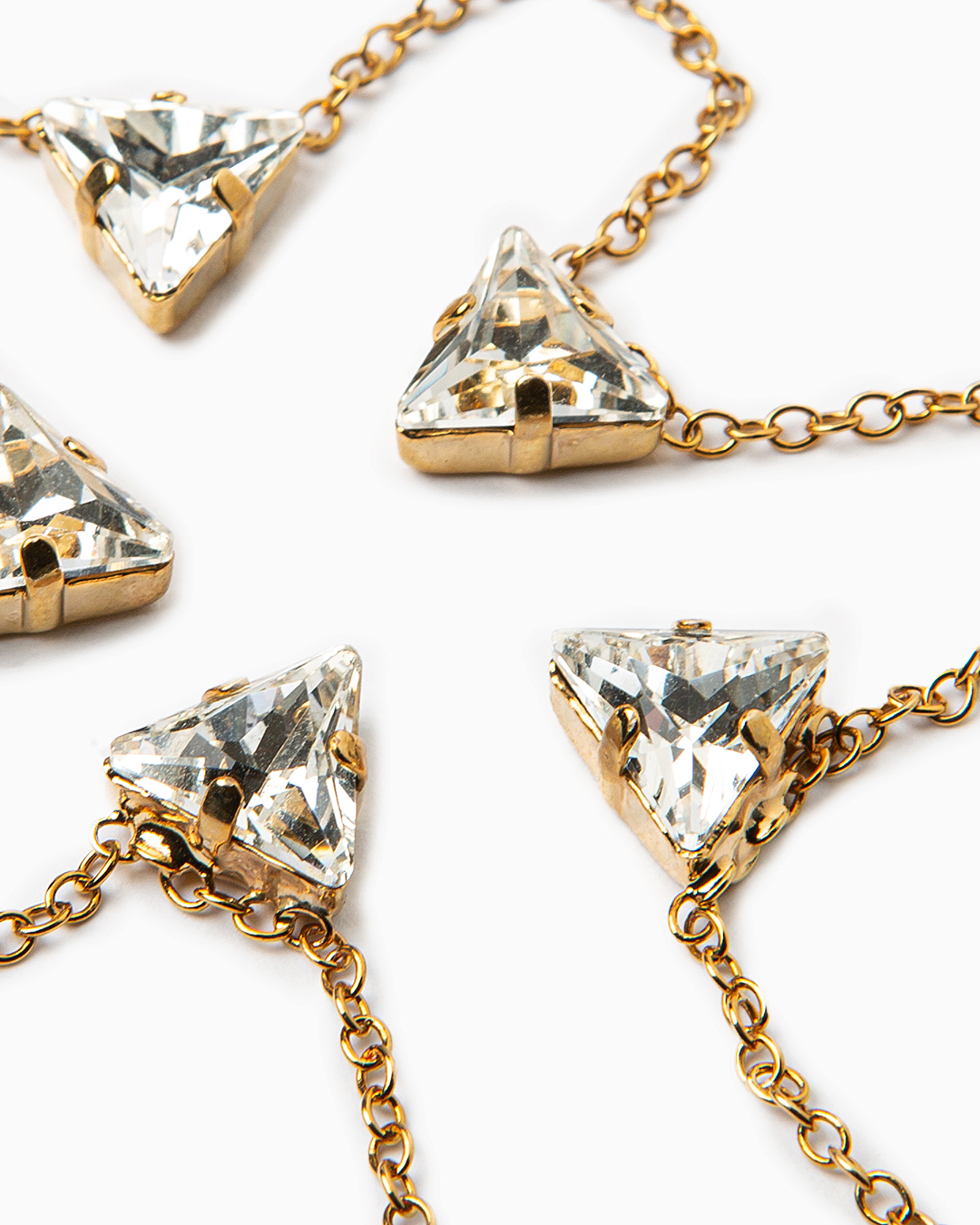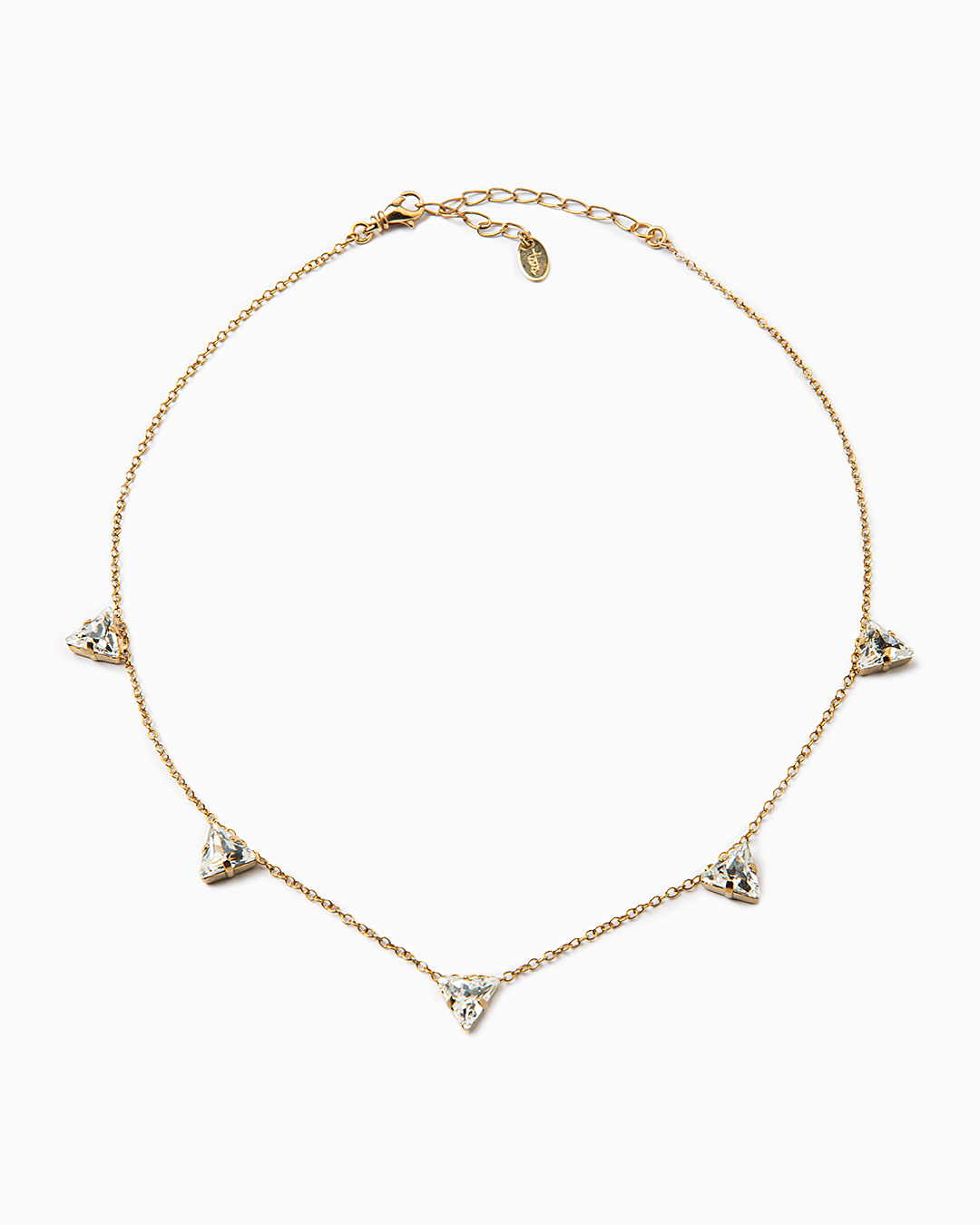 Collier girocollo a 5 punte realizzato in ottone galvanizzato color oro nickel free. Lunghezza regolabile. Produzione artigianale italiana.