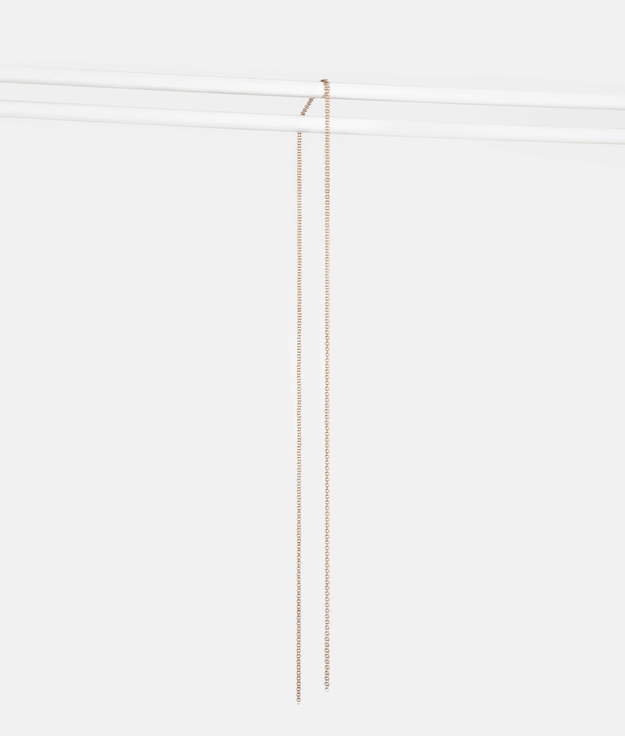 Fine e leggero il collier cravatte in cotta di maglia, diametro 3,5 mm, si annoda semplicemente. Dimensioni: cm 137 x 0,7. Materiali: bronzo. Colore Oro. Made in France.
