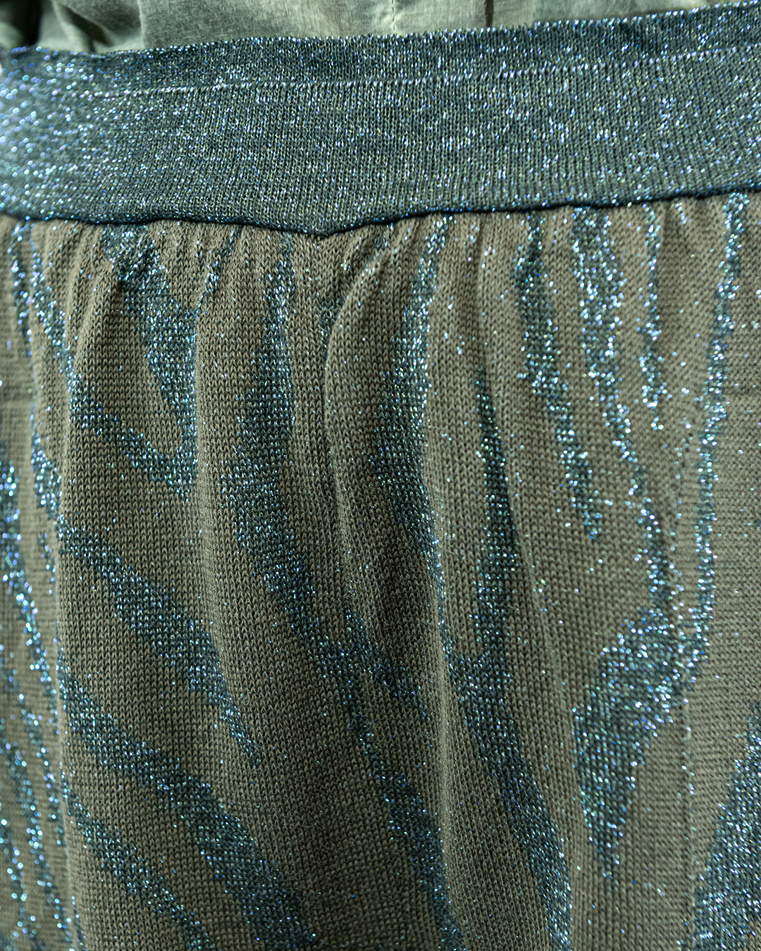 Colore base verde e disegni color ottanio in leggerissimo lurex.