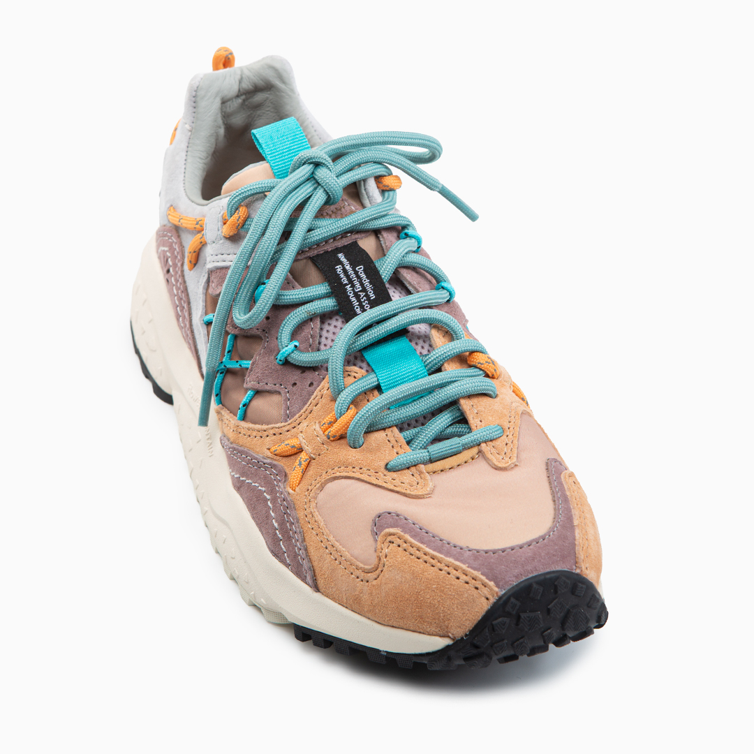 Sneaker outdoor in tessuto e suede con dettagli in tubolare tecnico. Chiusura con lacci. Fodera in pelle e tessuto, soletta interna in sughero naturale antibatterico. Fondo in gomma ultra leggera con battistrada bicolore.