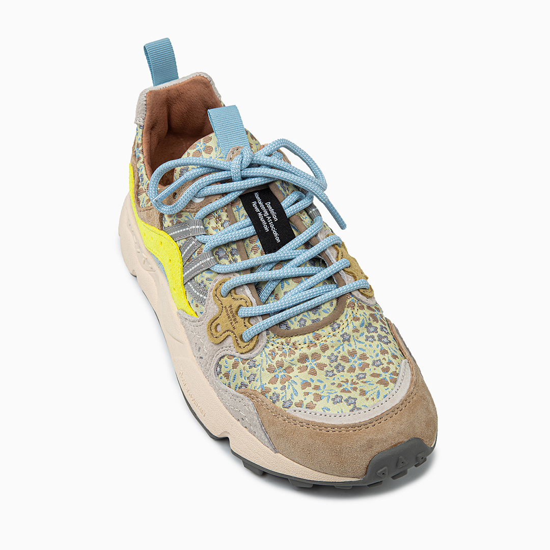 Sneaker in pelle con inserti laterali. Chiusura con stringhe da trekking e occhielli. Fodera in tessuto e pelle con soletta interna in sughero naturale antibatterico. Fondo in gomma ultra leggera con battistrada dentellato.