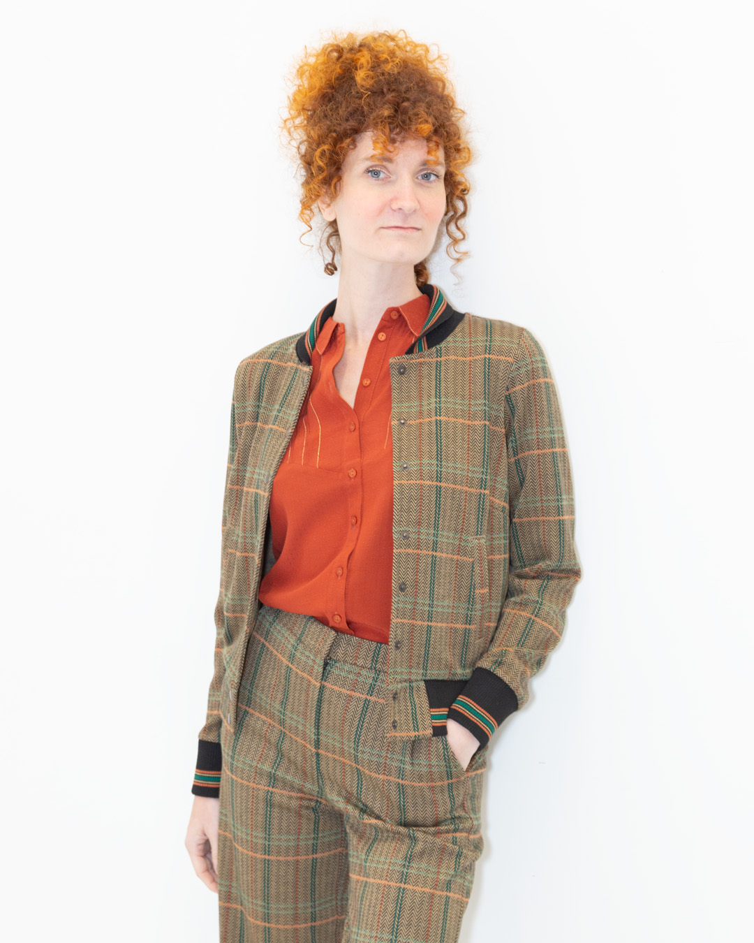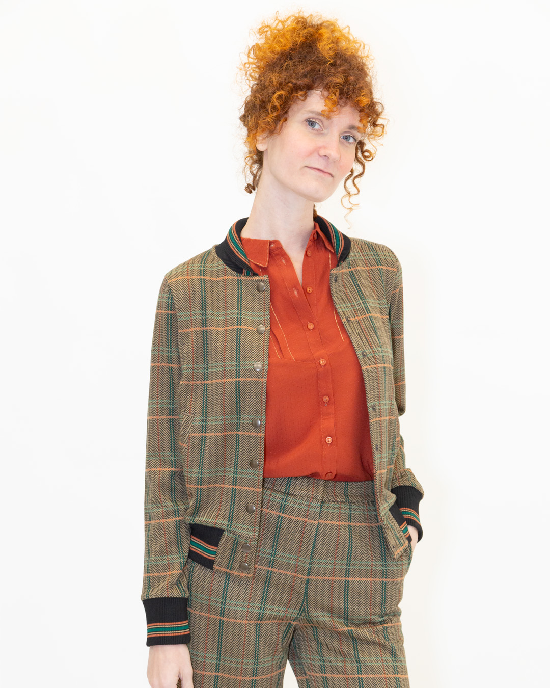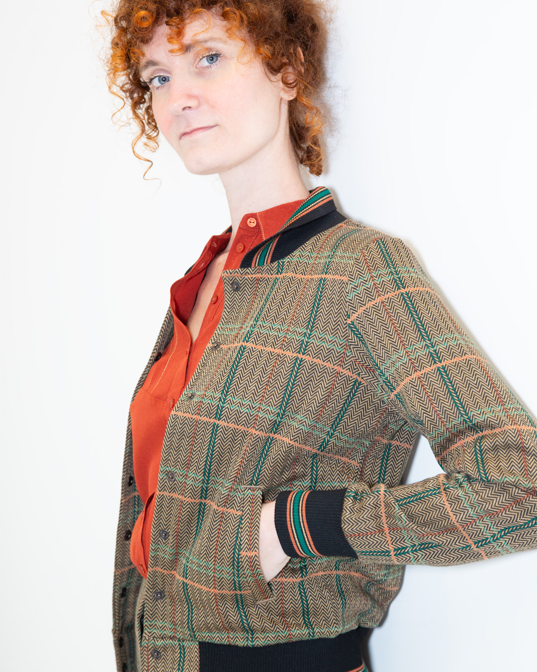Giacca dal design a quadri con colletto in maglia e maniche lunghe con polsini.