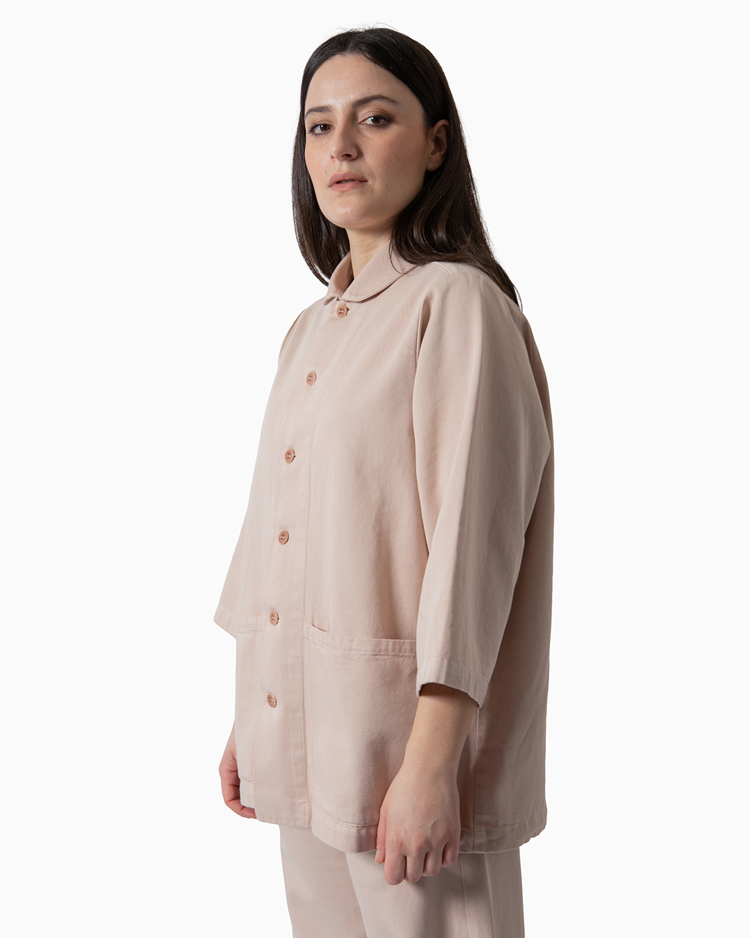 Giacca a 3/4 con tasche frontali e colletto a camicia in cotone drill. Composizione: 100% cotone. Made in Italy.