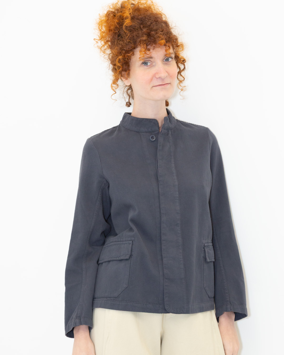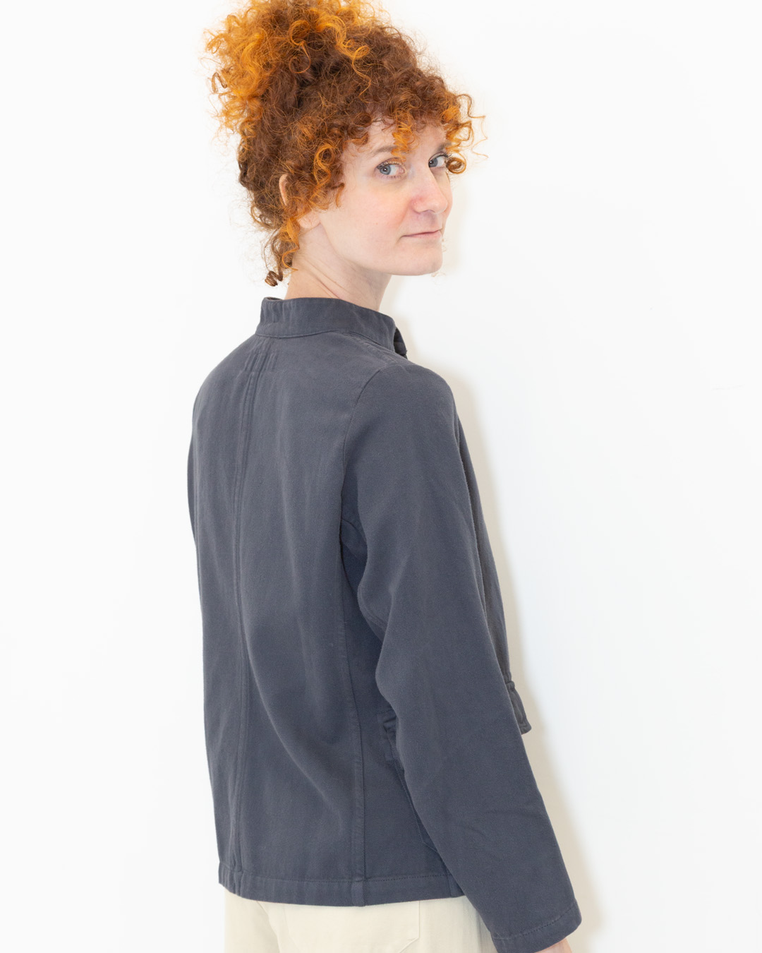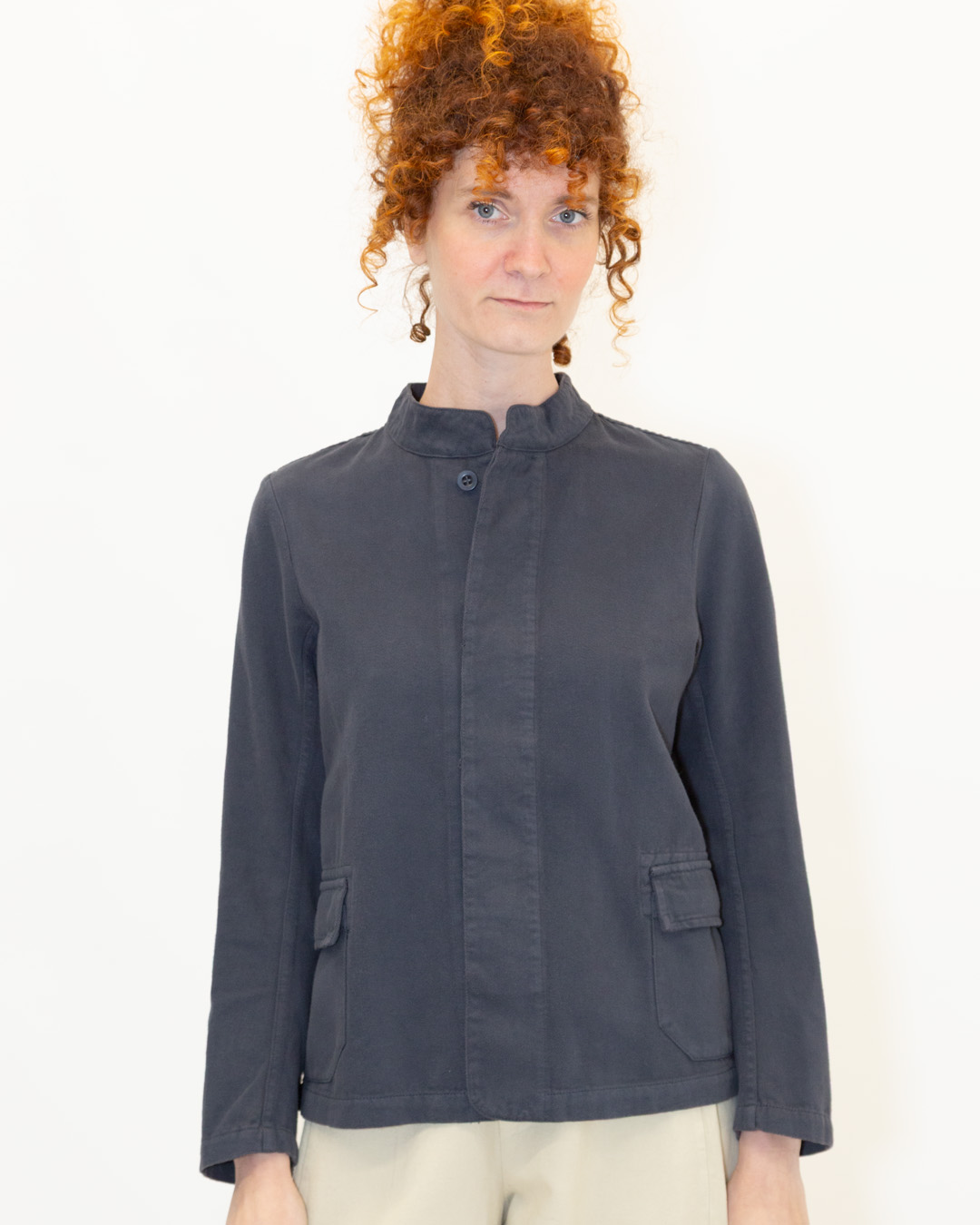 Giacca tinta in capo realizzata in filato di cotone 100%.
