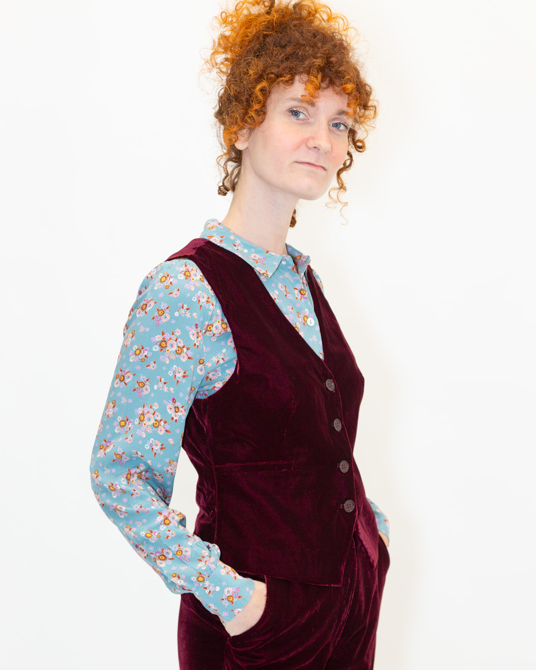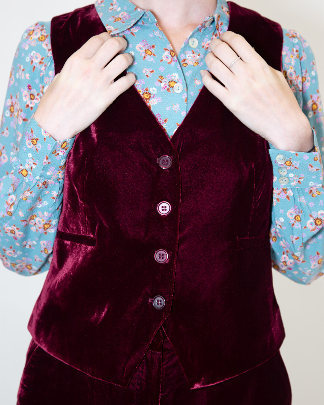 Gilet realizzato in velluto intrecciato con una texture solida e non elasticizzata.