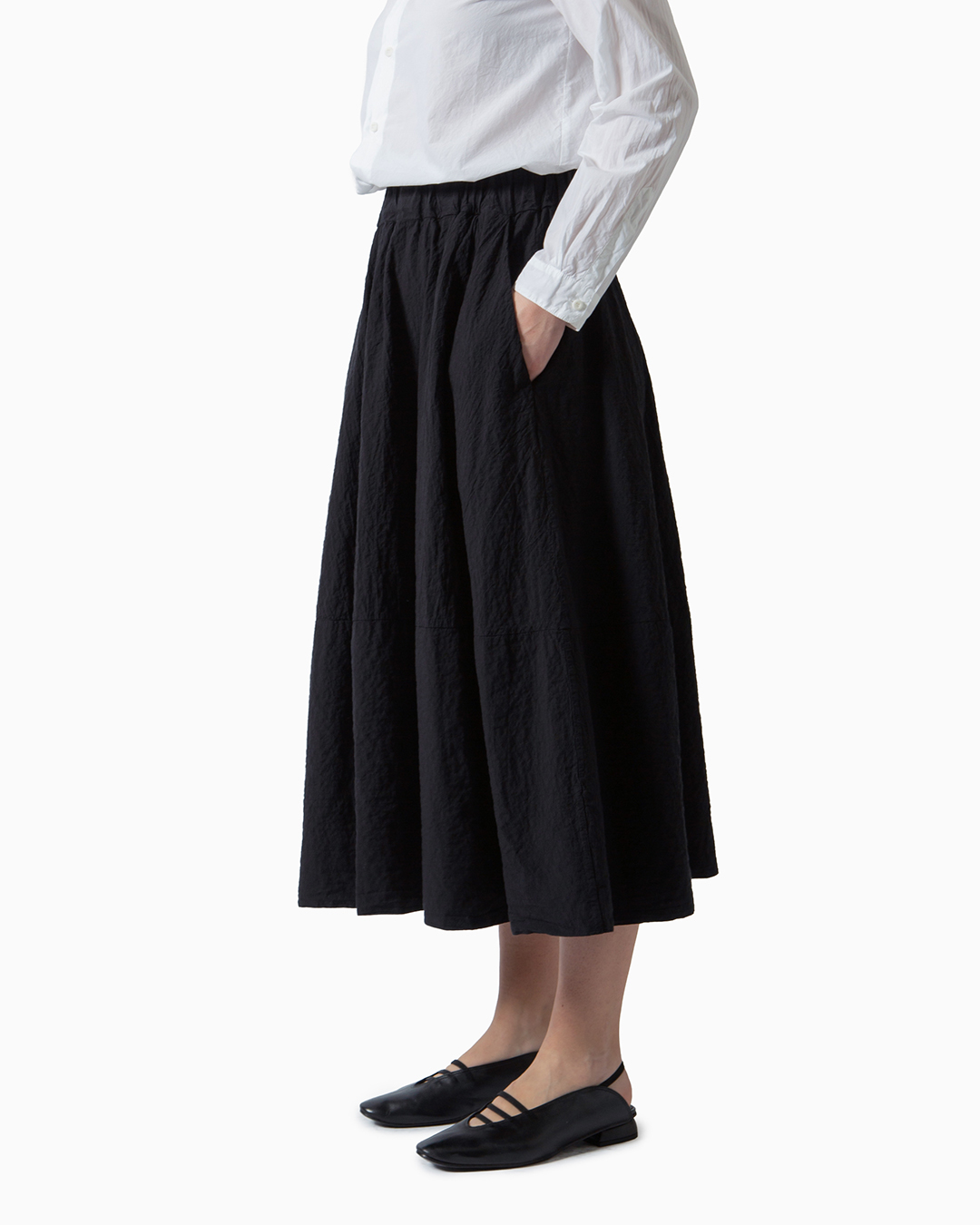 Gonna in tessuto tinta ondulata.