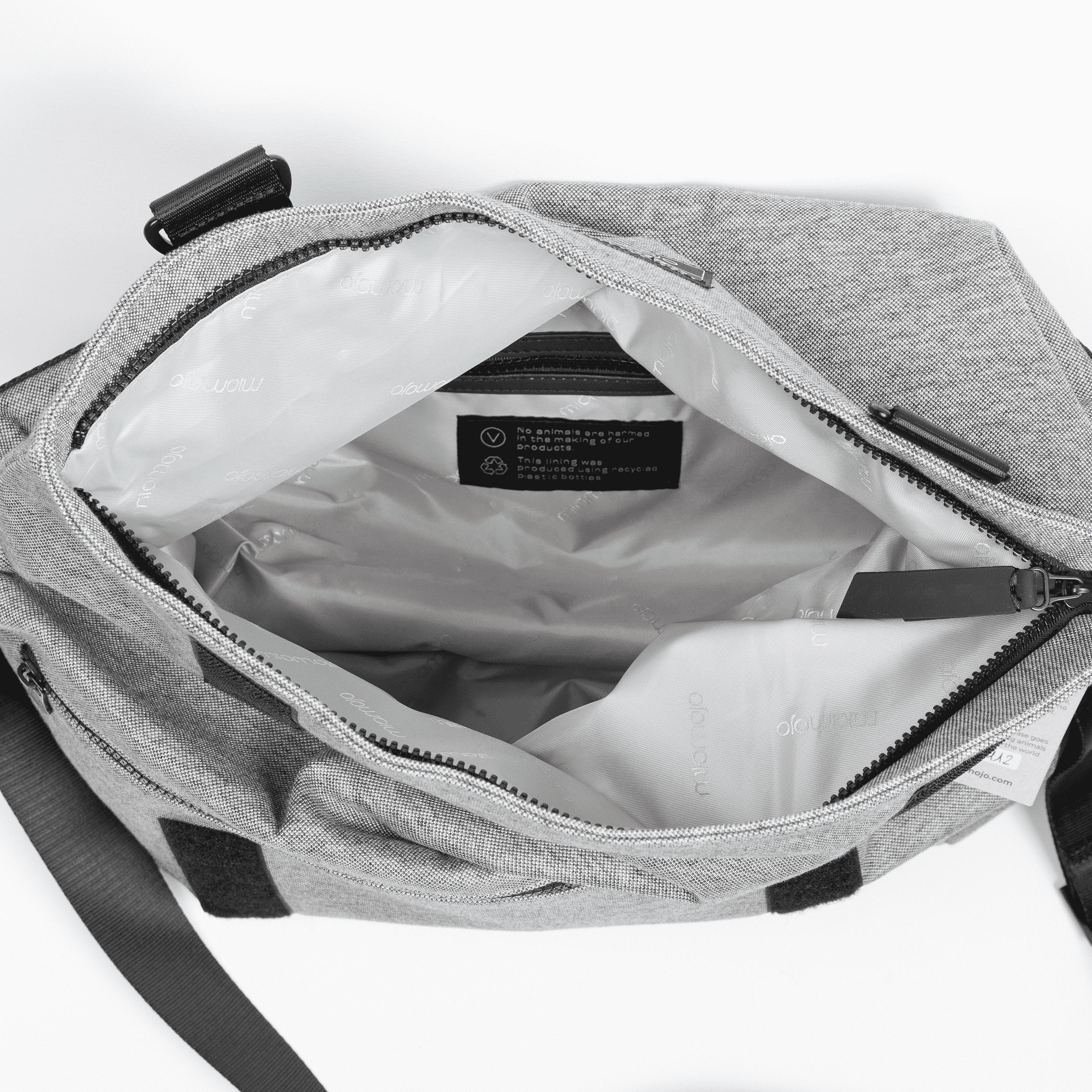 Questa borsa nasce da un progetto di sostenibilità, nello specifico è stata prodotta riciclando i fondi di caffè.