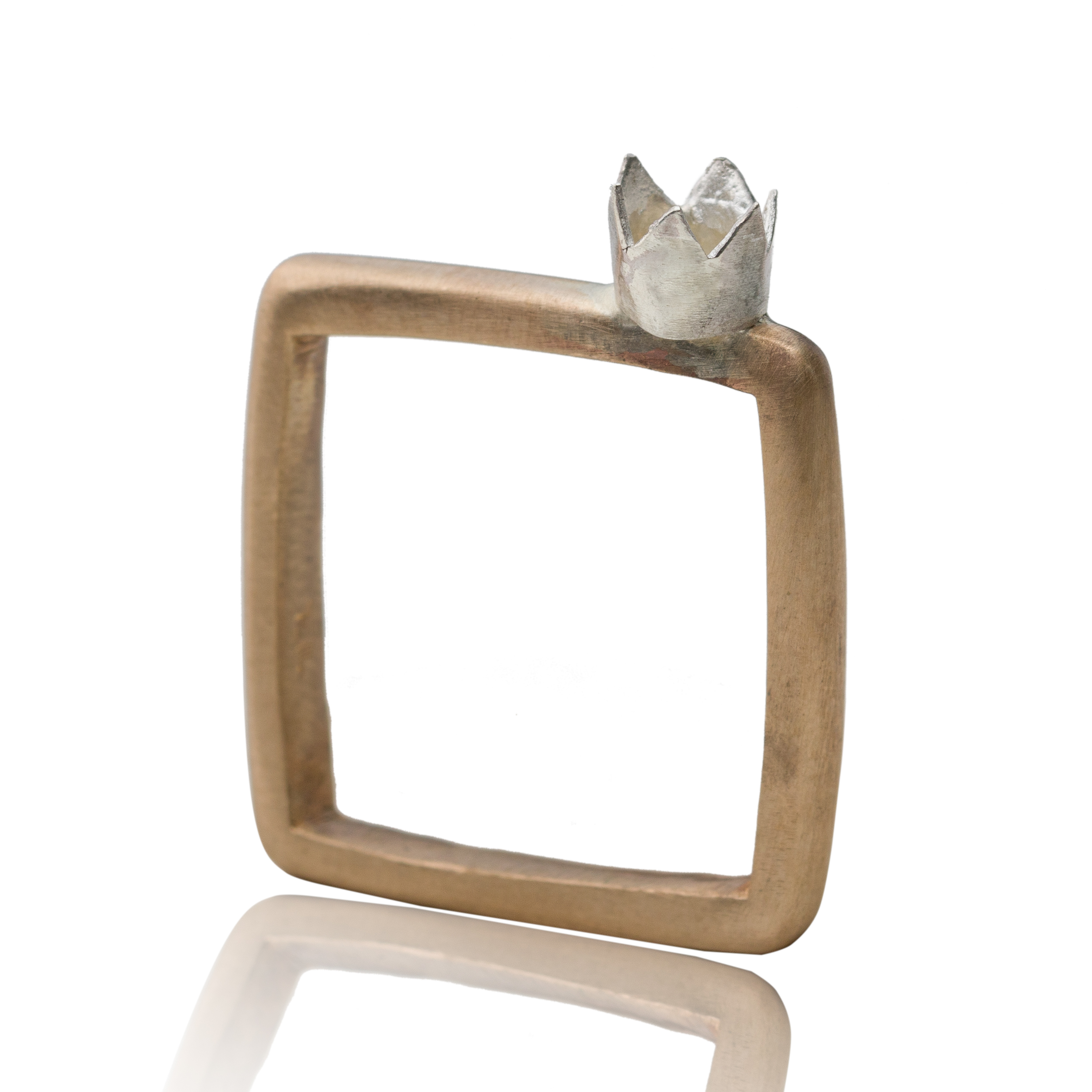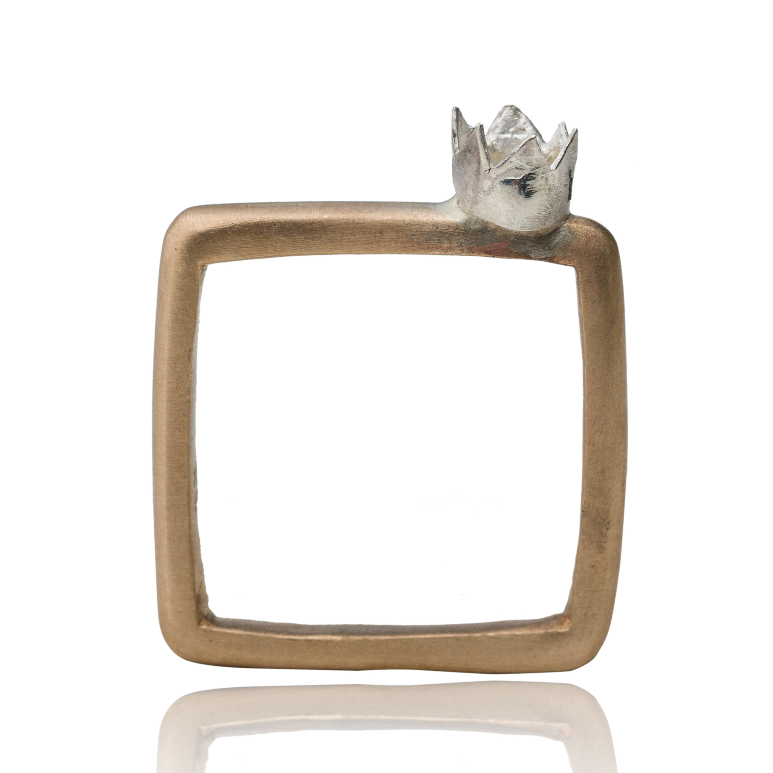Anello in bronzo opaco con corona in miniatura in argento brillante.