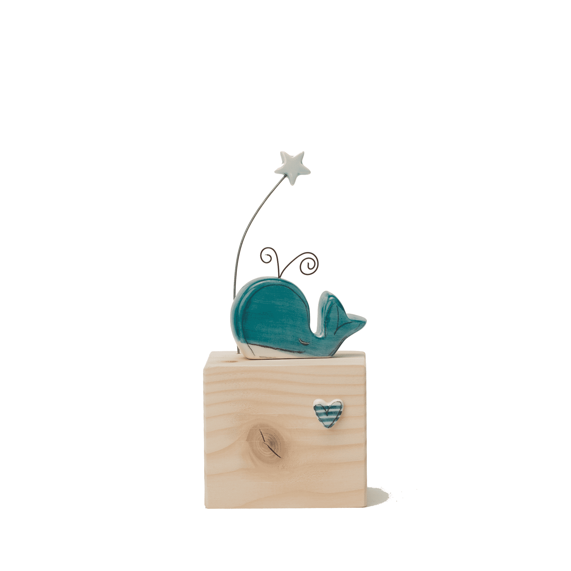 Cubotto in legno con elementi in argilla dipinta a mano.