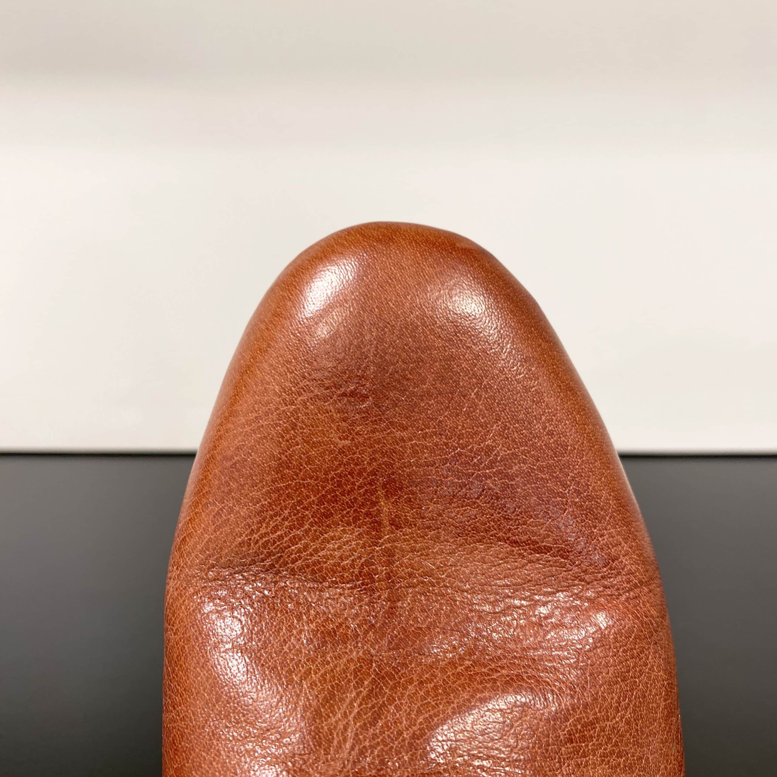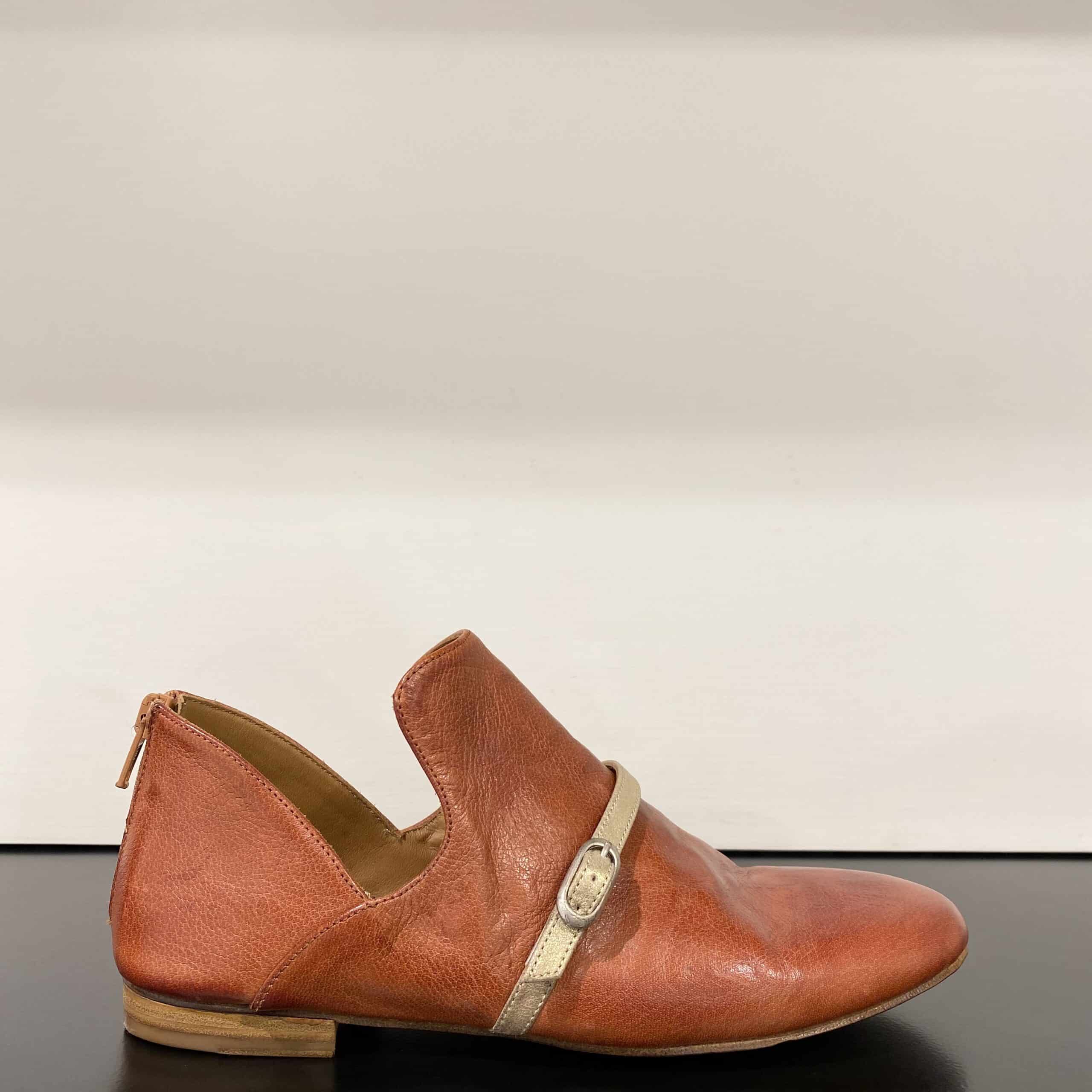 Cintino regolabile in pelle oro sabbiato sul collo del piede.