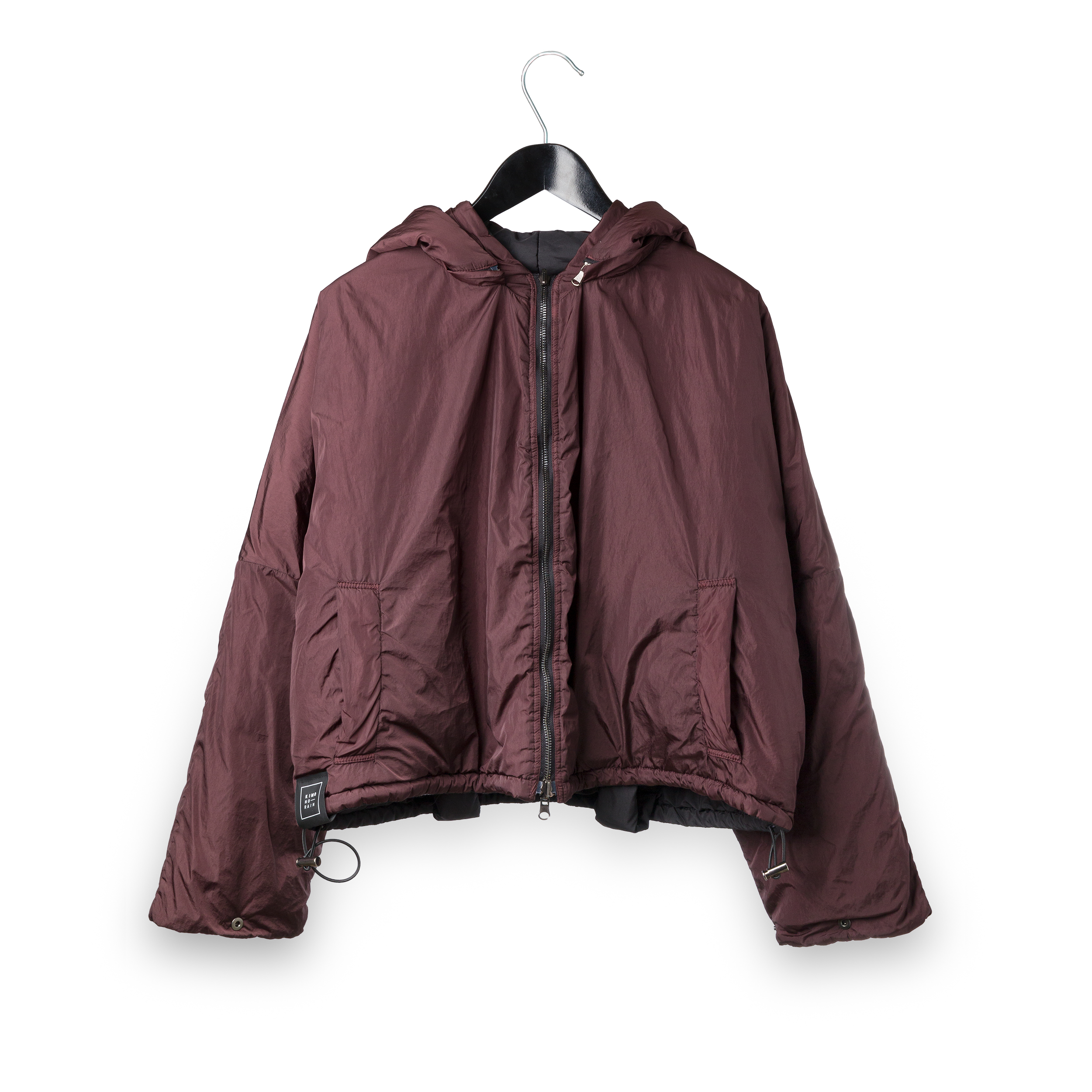 Composizione: PA recycled, l’imbottitura è in ovatta riciclata all’85% da bottiglie di plastica.