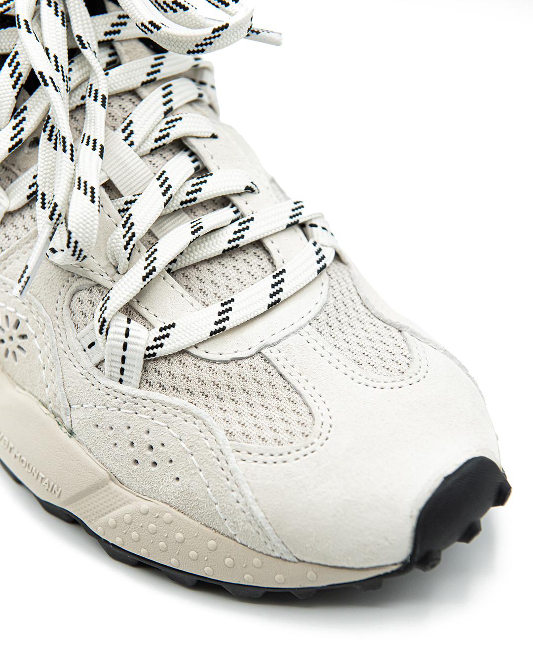 Progetto giapponese. Produzione sostenibile. Sneakers multimateriale. Calzata regolare. Lacci regolabili. Plantare interno estraibile. Designed in Japan.
