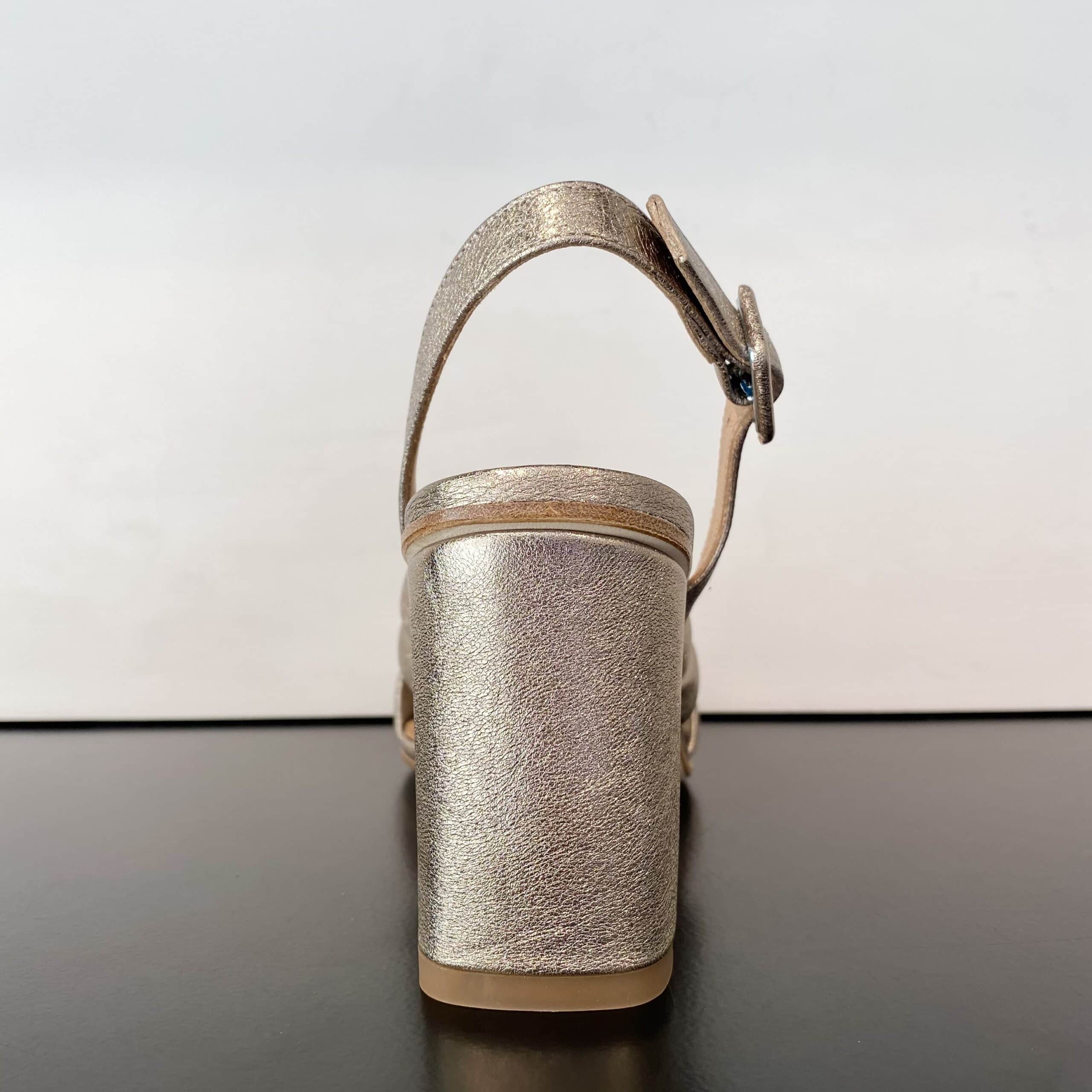 Tacco rivestito in pelle laminata alto 7,5 cm.
