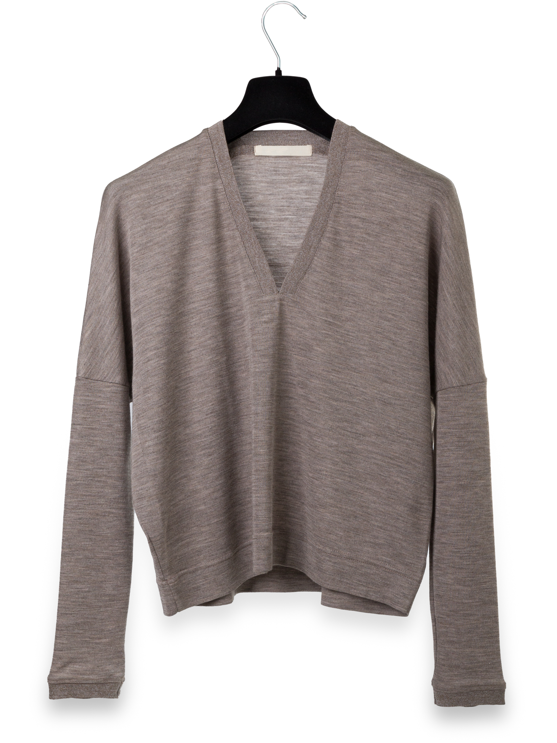 Manica lunga che rimane aderente fino al gomito, con un polsino a costine alto 2 cm.
