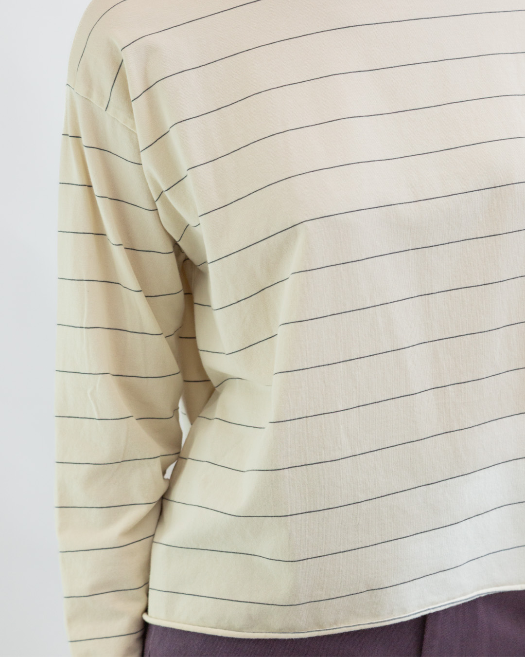 Maglia a righe a maniche lunghe con scollo rotondo.