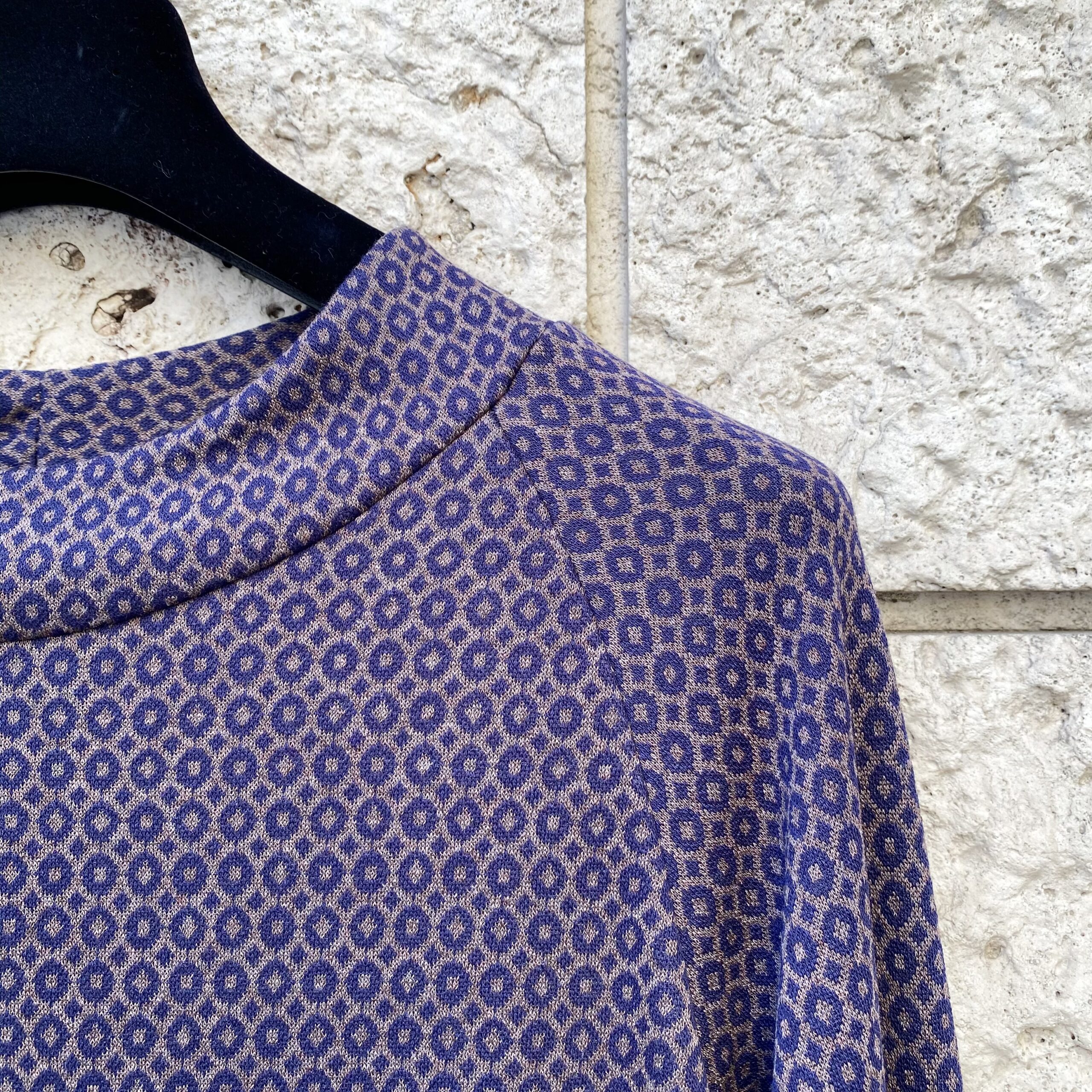Produzione sostenibile. Colore marrone e viola. Lunghezza anteriore 54 cm. Lunghezza della parte posteriore 57 cm. Maniche raglan. Non ci sono nรฉ zip nรฉ bottoni. 100% viscosa. Made in Italy.