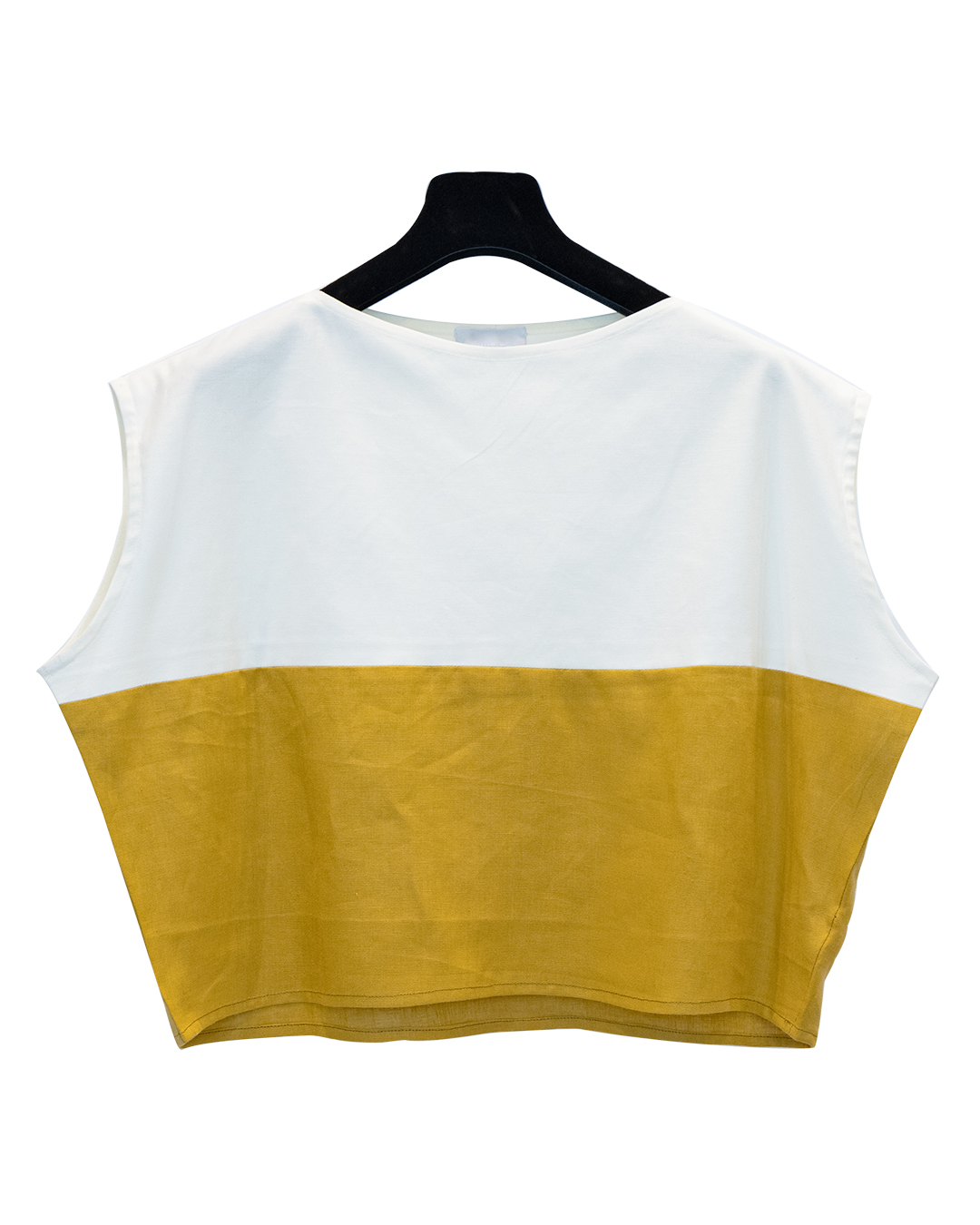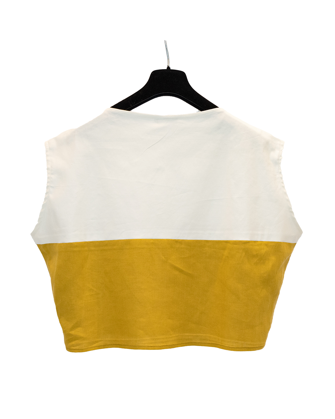 Blusa bicolore latte e ocra.