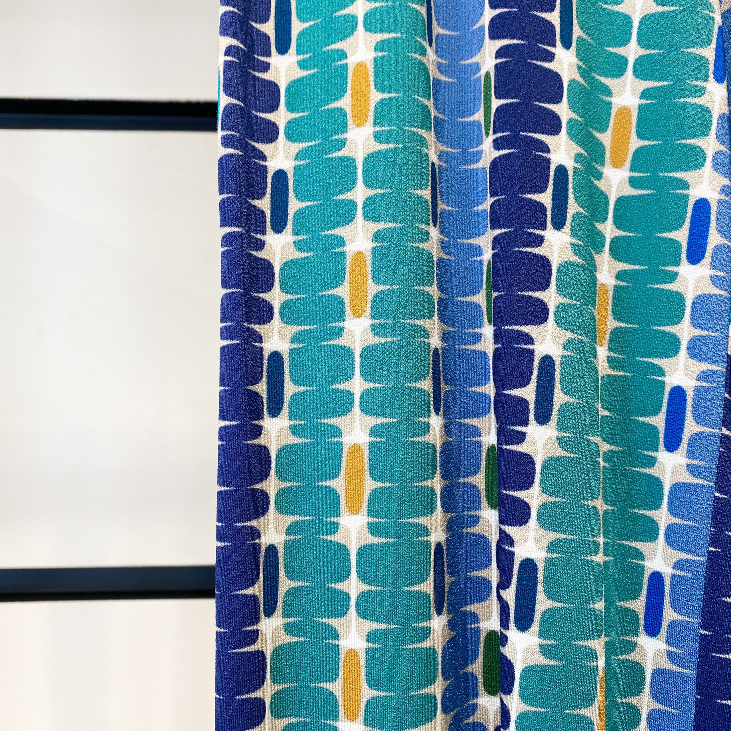 Colori della fantasia: verde prato, avio, ottanio, arancione, blu elettrico, blu, beige, avana.