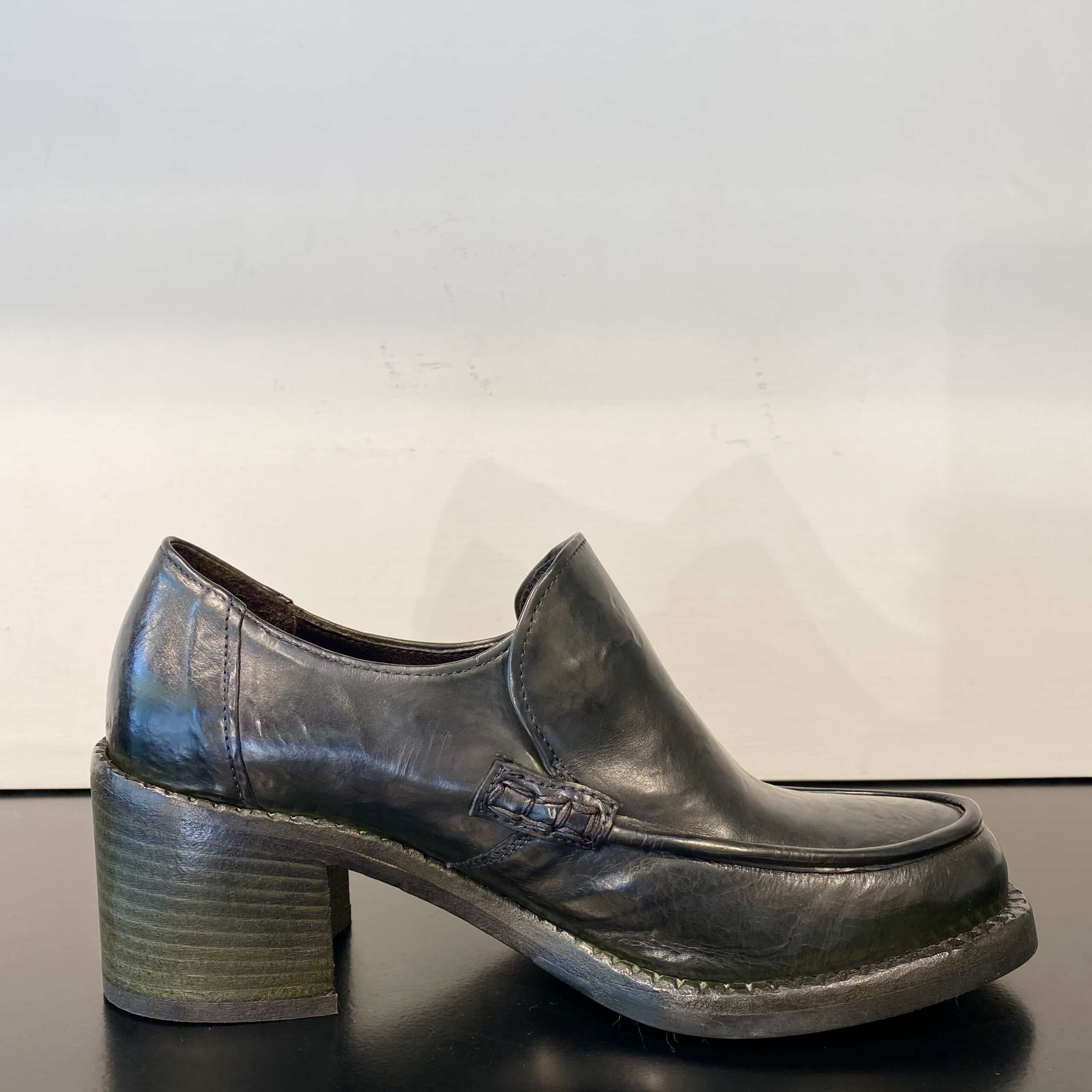 La scarpa una volta prodotta, viene lavata interamente e solo dopo la suola viene cucita con la tomaia, infine verrà spazzolata e lucidata.