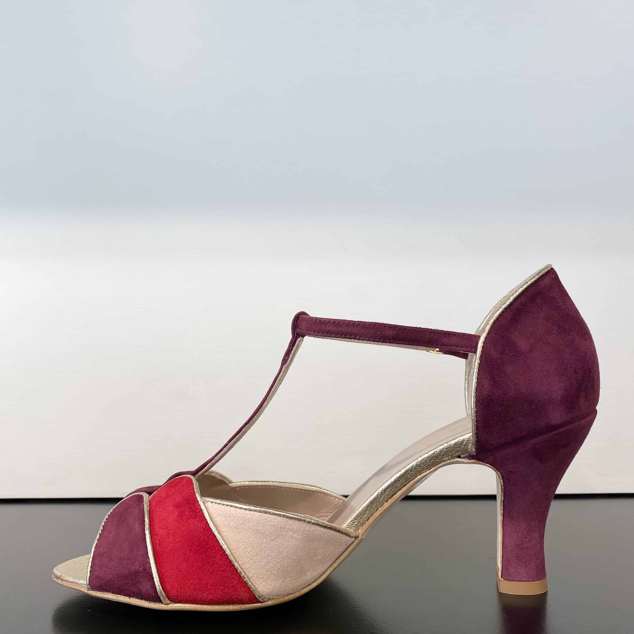 Tacco rivestito in camoscio alto 7,5 cm.