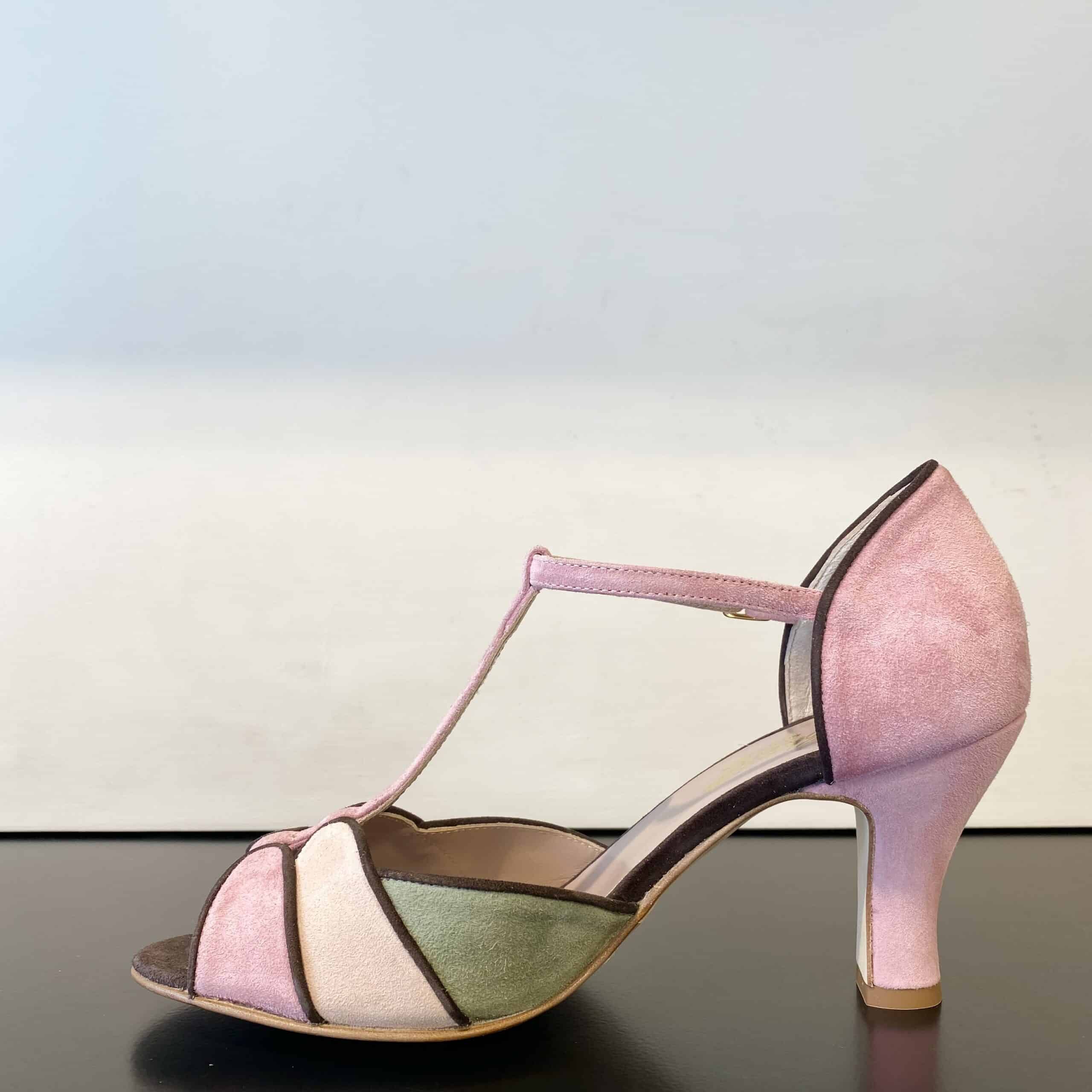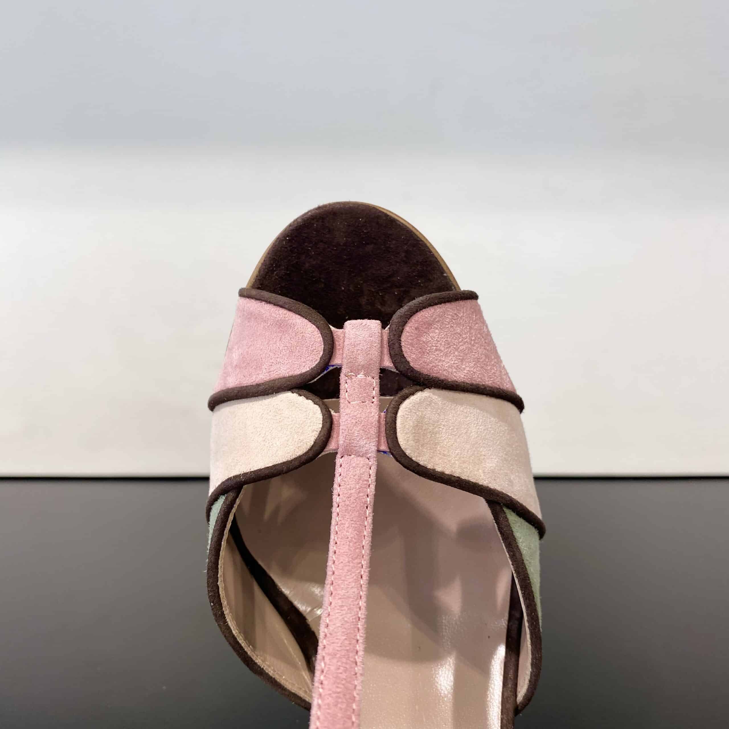Suolettino interno in pelle con parte anteriore in camoscio testa di moro.