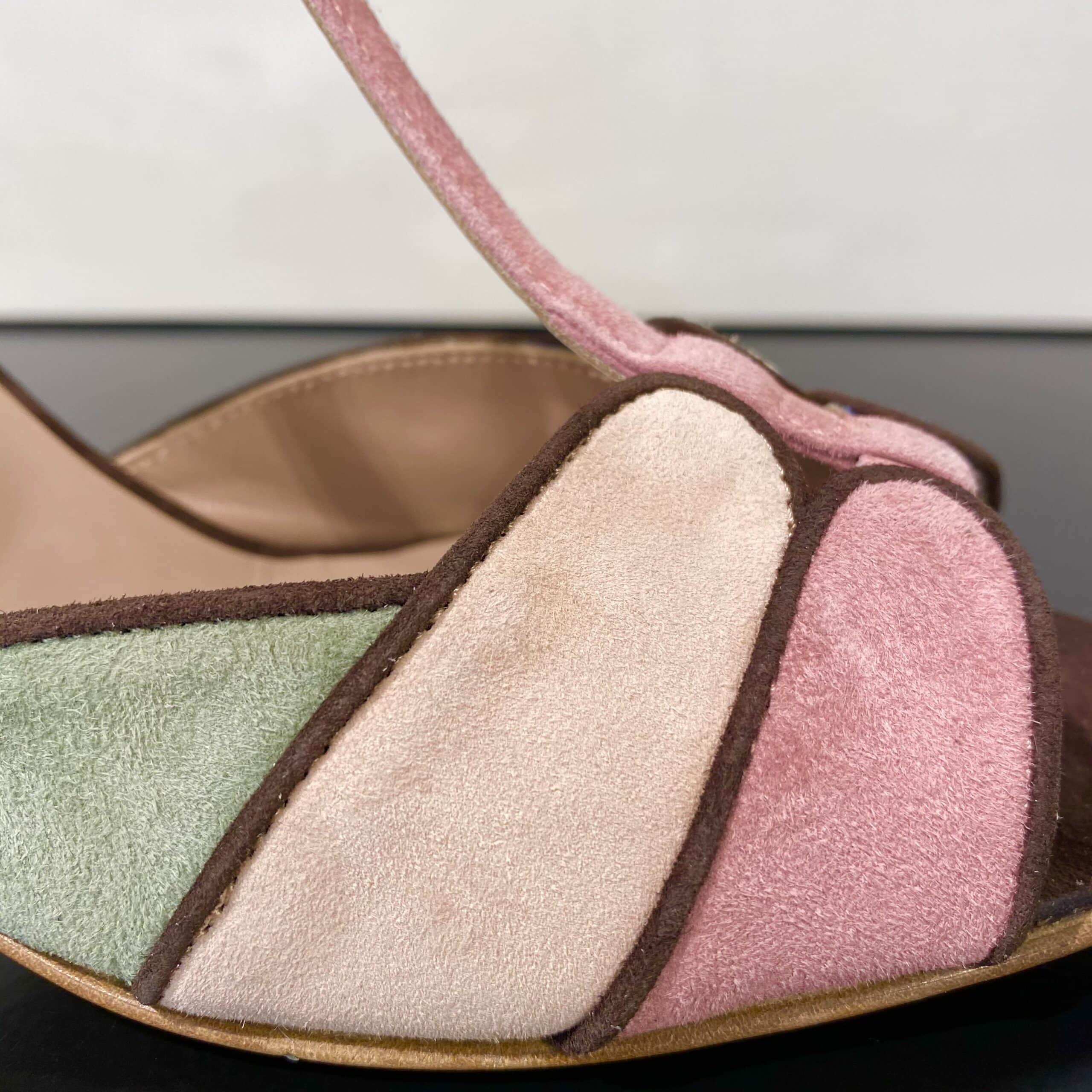 Tacco rivestito in camoscio alto 7,5 cm.