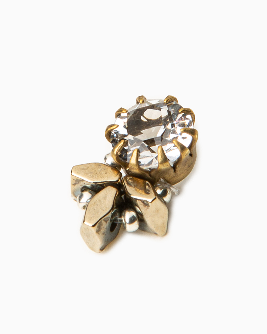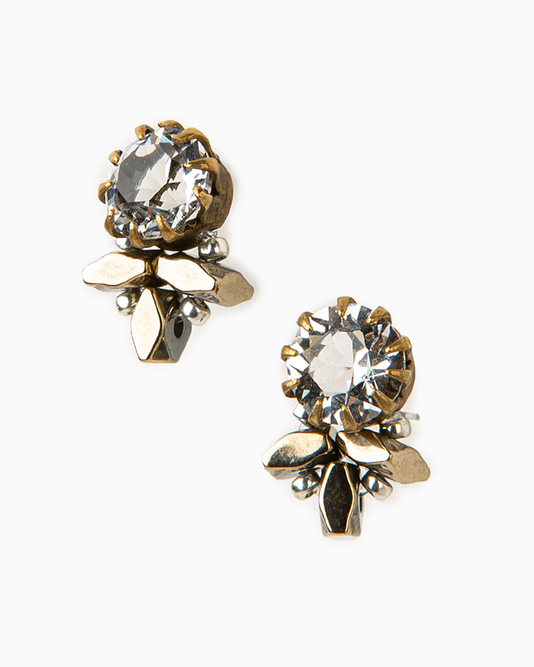 Orecchini realizzati a forma di fiore in cristallo ed ematite impreziosito da piccole perline di fiume.