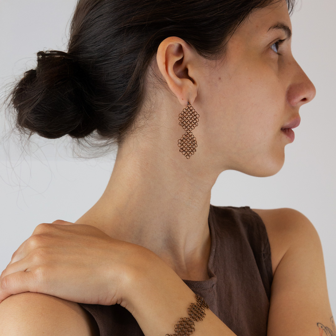 Gli orecchini della collezione Rosemary, con il loro design geometrico e floreale, sono molto leggeri e facili da indossare. Dimensioni: 4,5 x 2 cm. Materiale: Acciaio inossidabile. Colore: bronzo. Made in France.