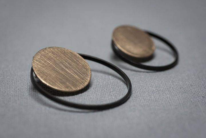Gli orecchini TUBE sono in ottone con trattamento galvanico, cataforesi e smalto, la catena ha trattamento galvanico anallergico. Dimensioni: cm 4x cm 4. cm 3x cm 3. Produzione artigianale italiana.