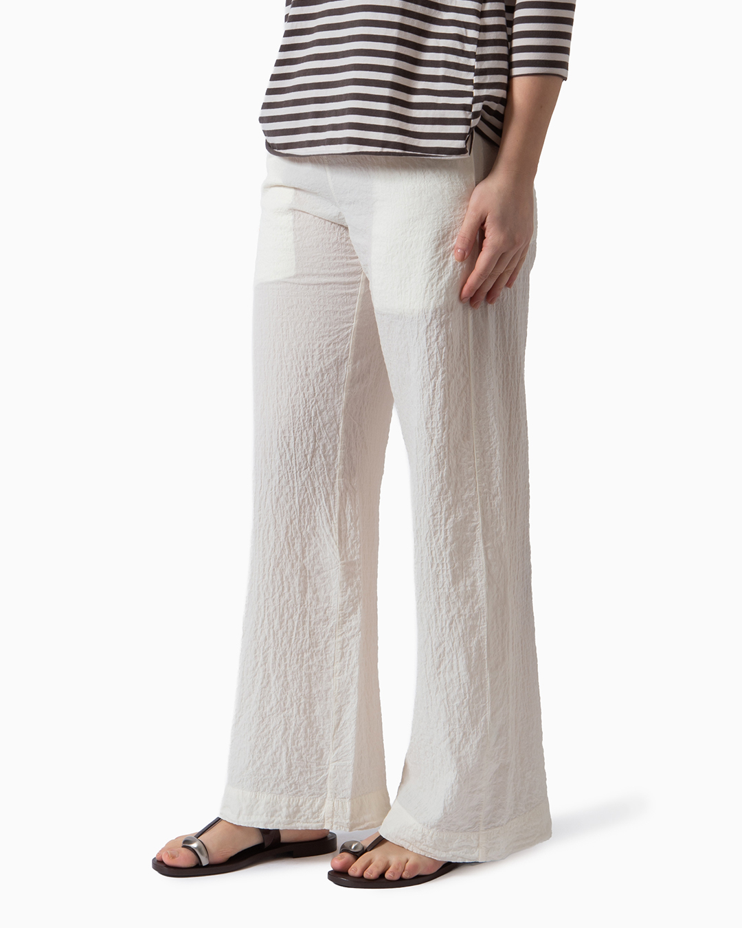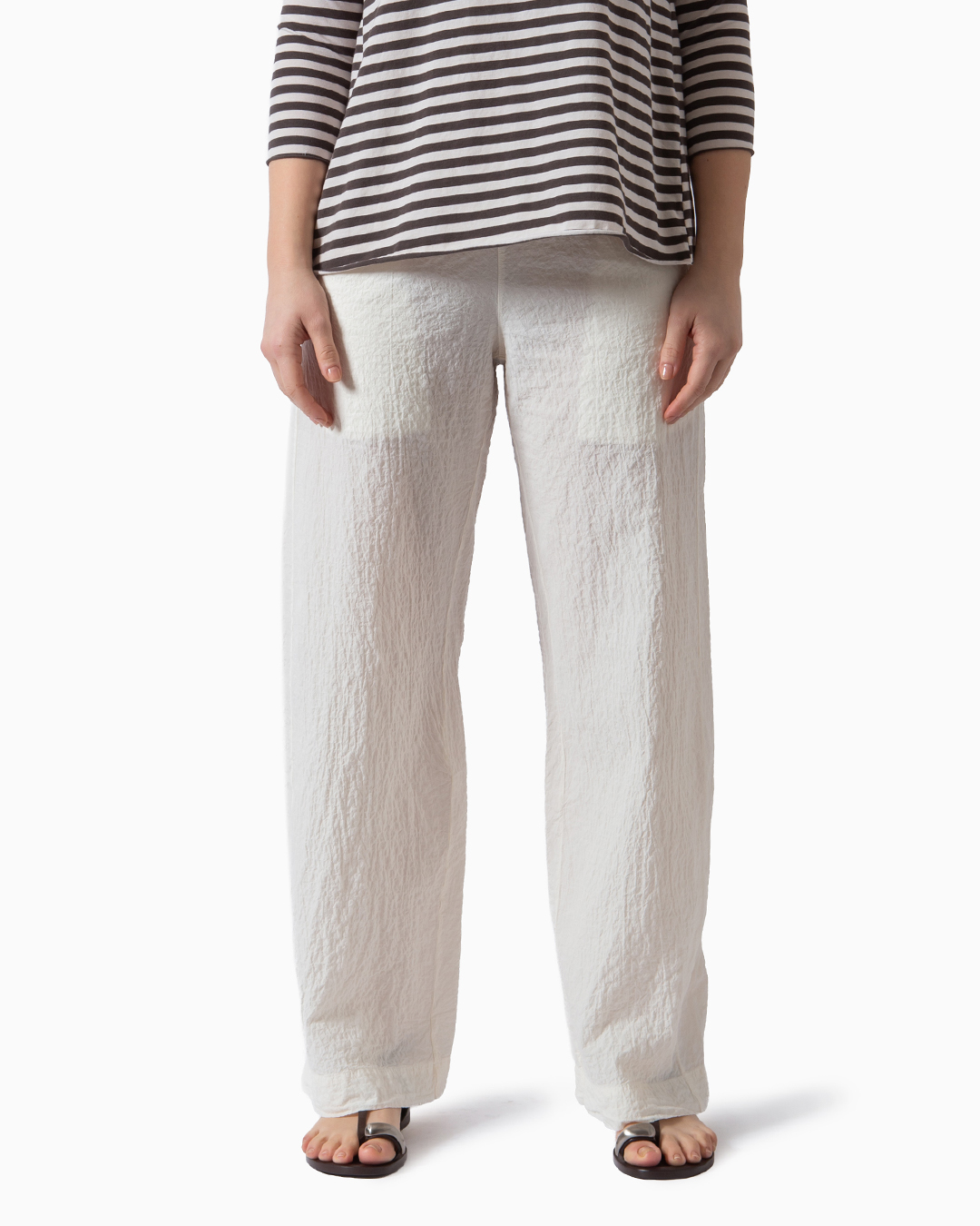 Pantaloni tinti in capo in tessuto ondulato. Tasche laterali ed elastico in vita. Composizione: 99% cotone, 1% elastan. Made in Italy.