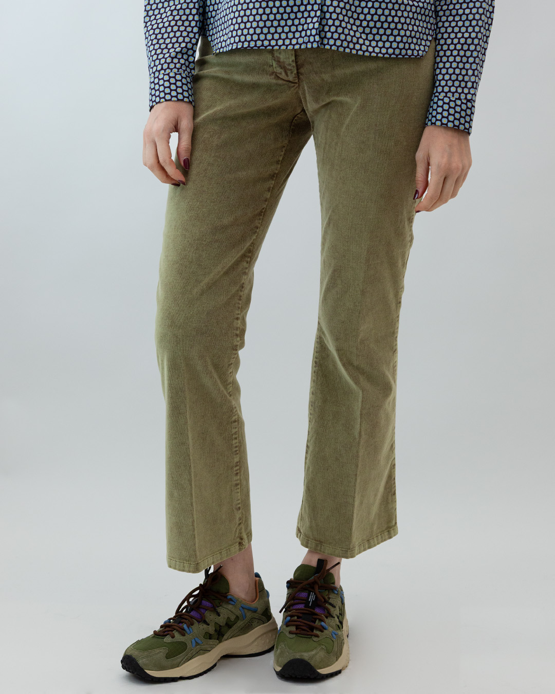 Pantaloni in velluto a costine dalla linea regular e leggermente svasato.