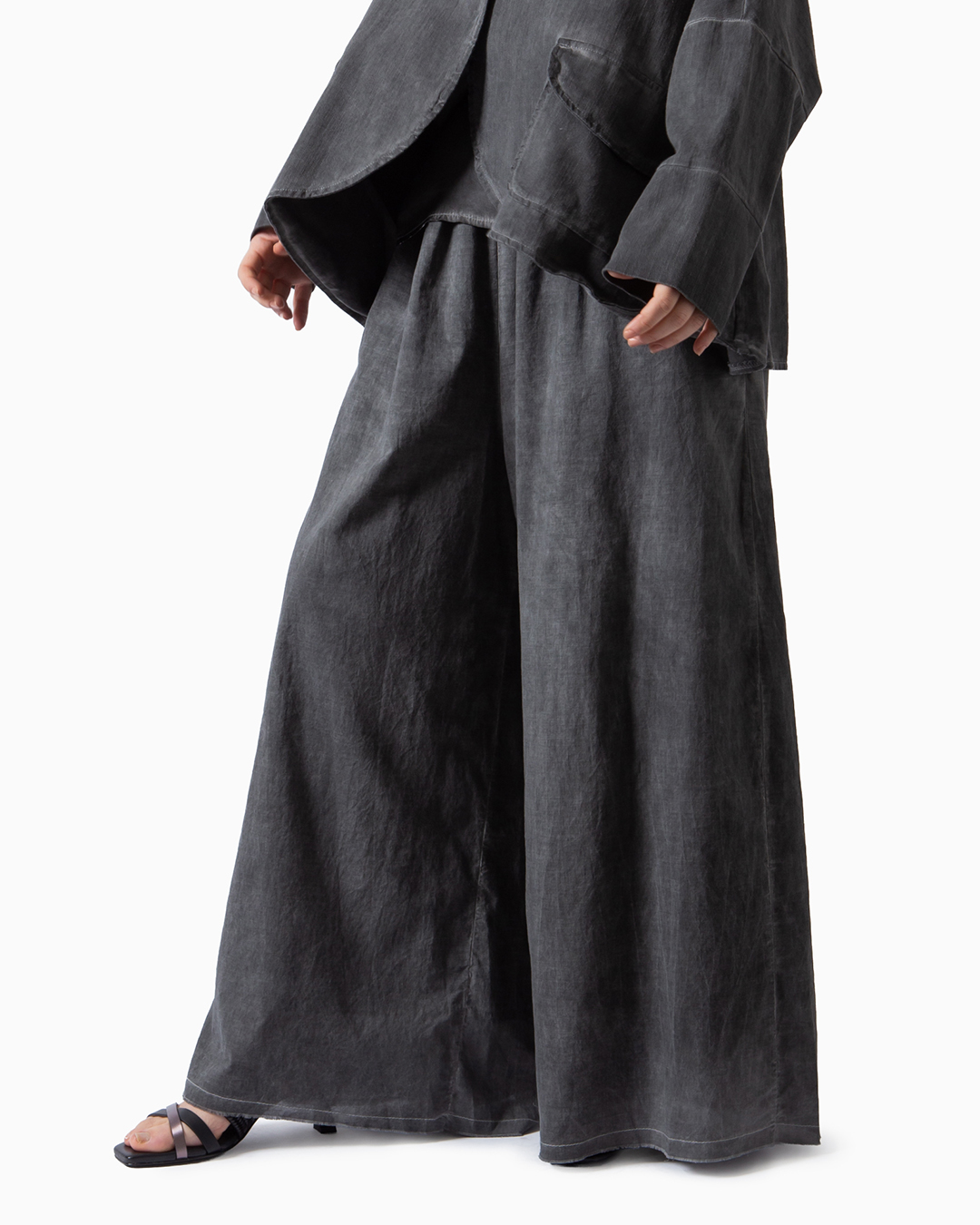 Pantaloni dalla linea ampia a palazzo in mussola di cotone e seta doppiata.
